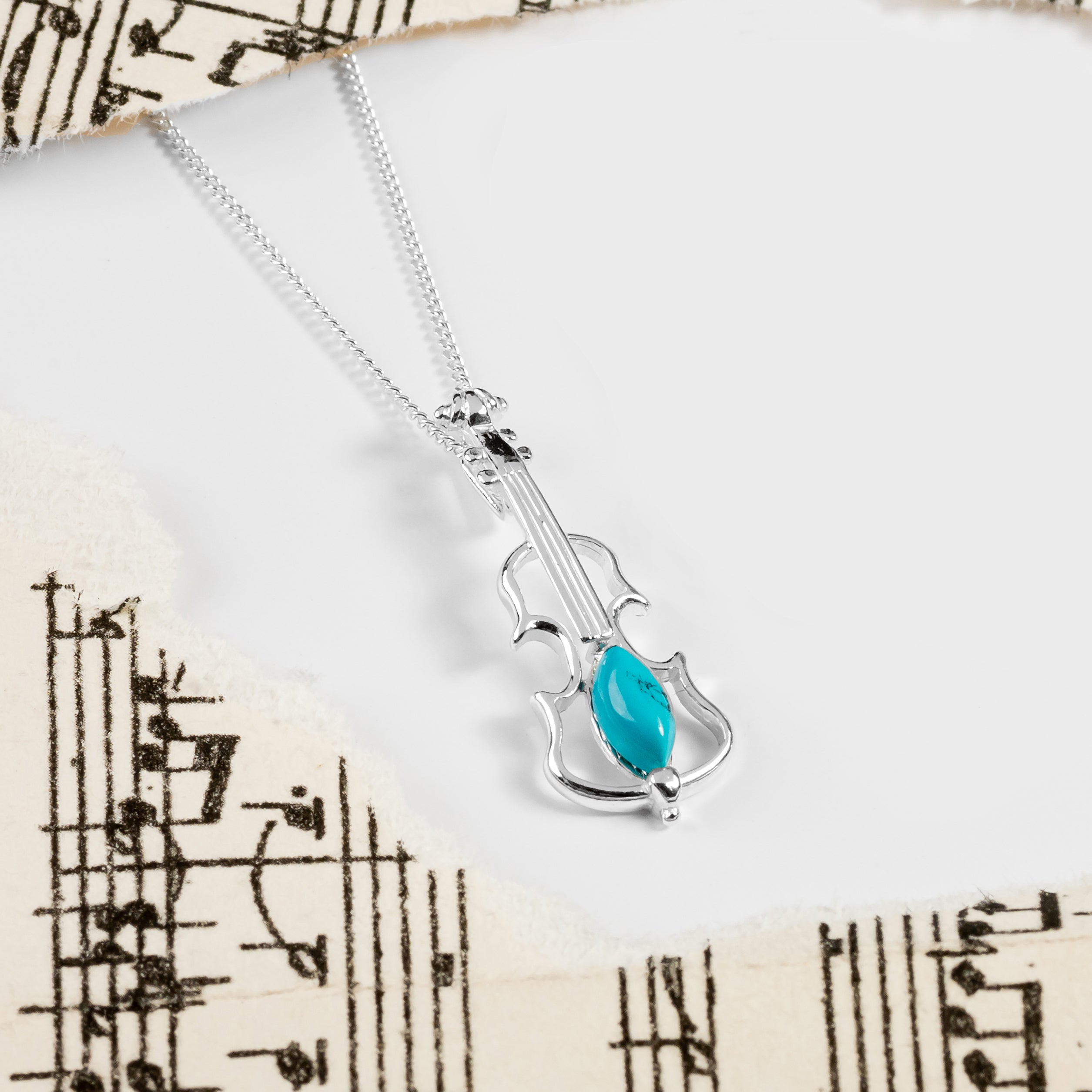 Surprise a player of string instruments with our Silver and Turquoise Violin Necklace.