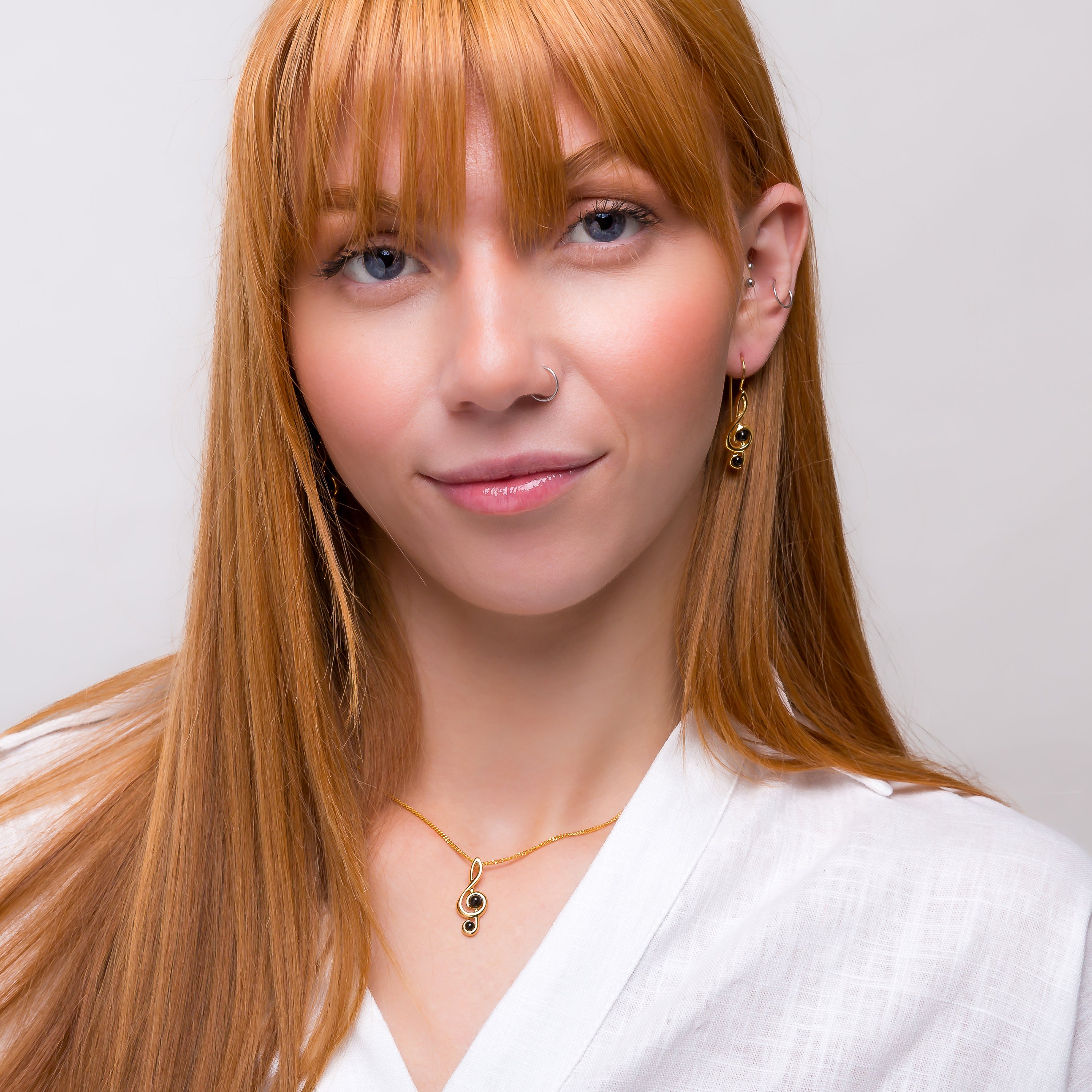 Musical Treble Clef Necklace in Silver with 24ct Gold and Black Onyx