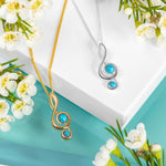 Dedicated to the art of music, this Silver with 24ct Gold and Turquoise Treble Clef Necklace is a great way to signify your hobby and passion.