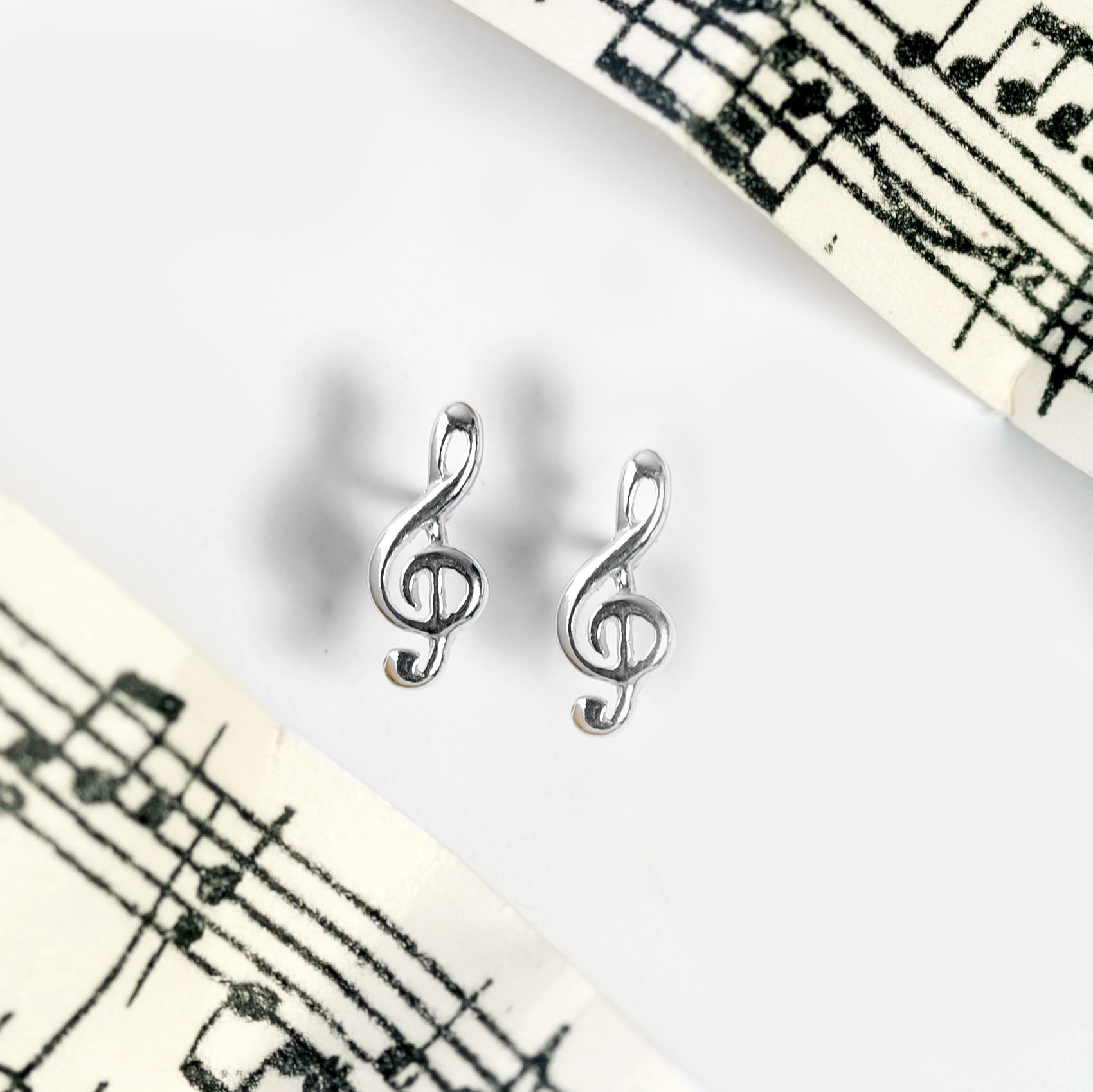 Musical Treble Clef Stud Earrings in Silver