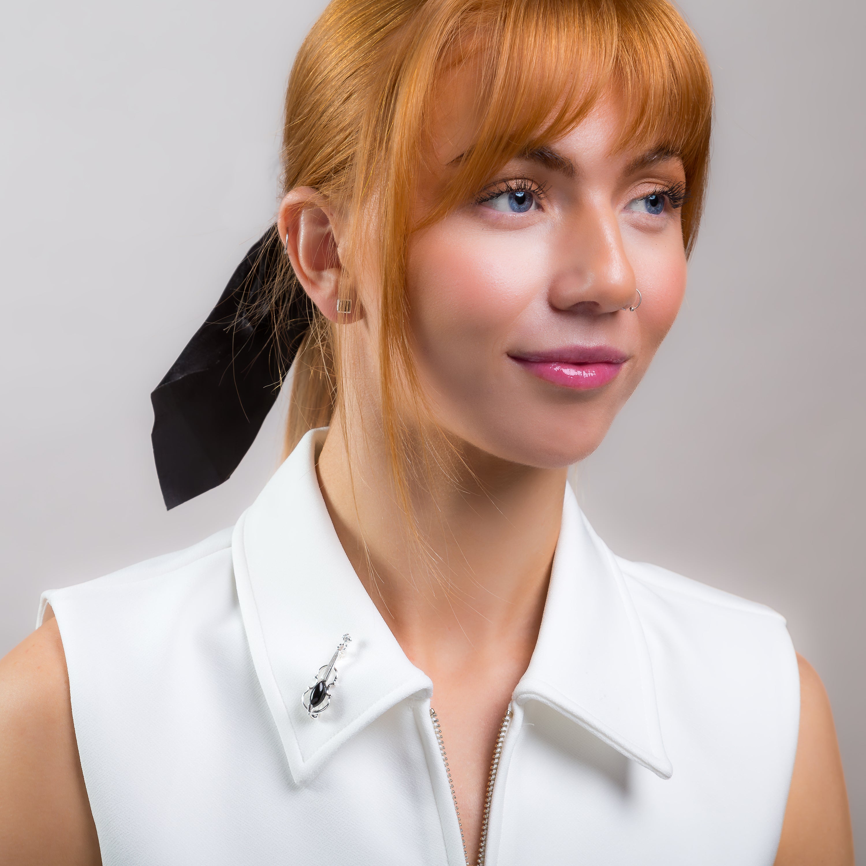 Channel your love of music with our Silver and Black Onyx Violin Brooch.