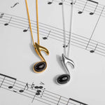 Fun Silver and Black Onyx Quaver Necklace is perfect for musical lovers.