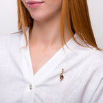 Handcrafted in 925 silver finished in 24ct Gold to form a traditional Treble Clef and adorned with natural Black Onyx gemstones to give them a realistic finish. Complete with a solid silver pin and safety clasp fitting.