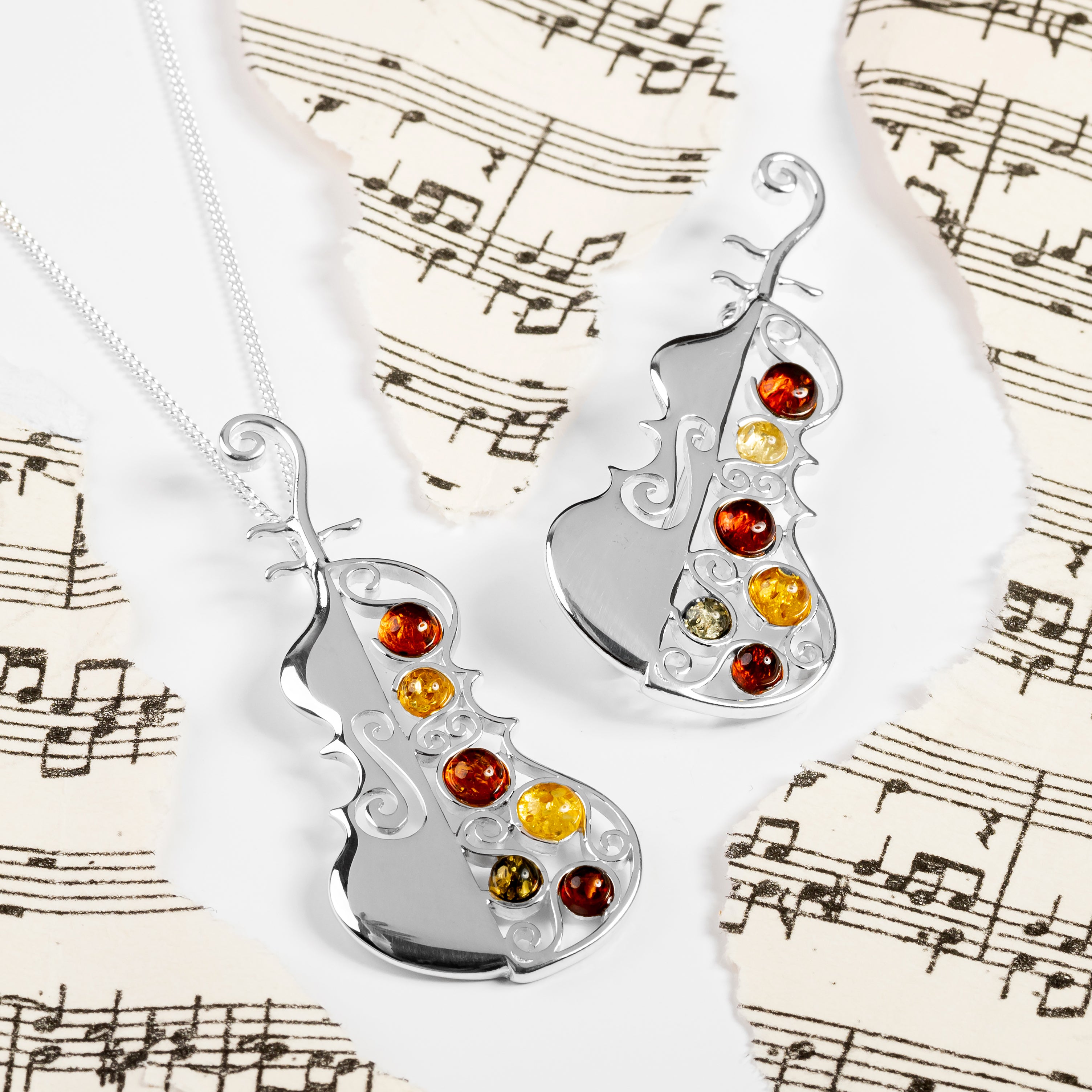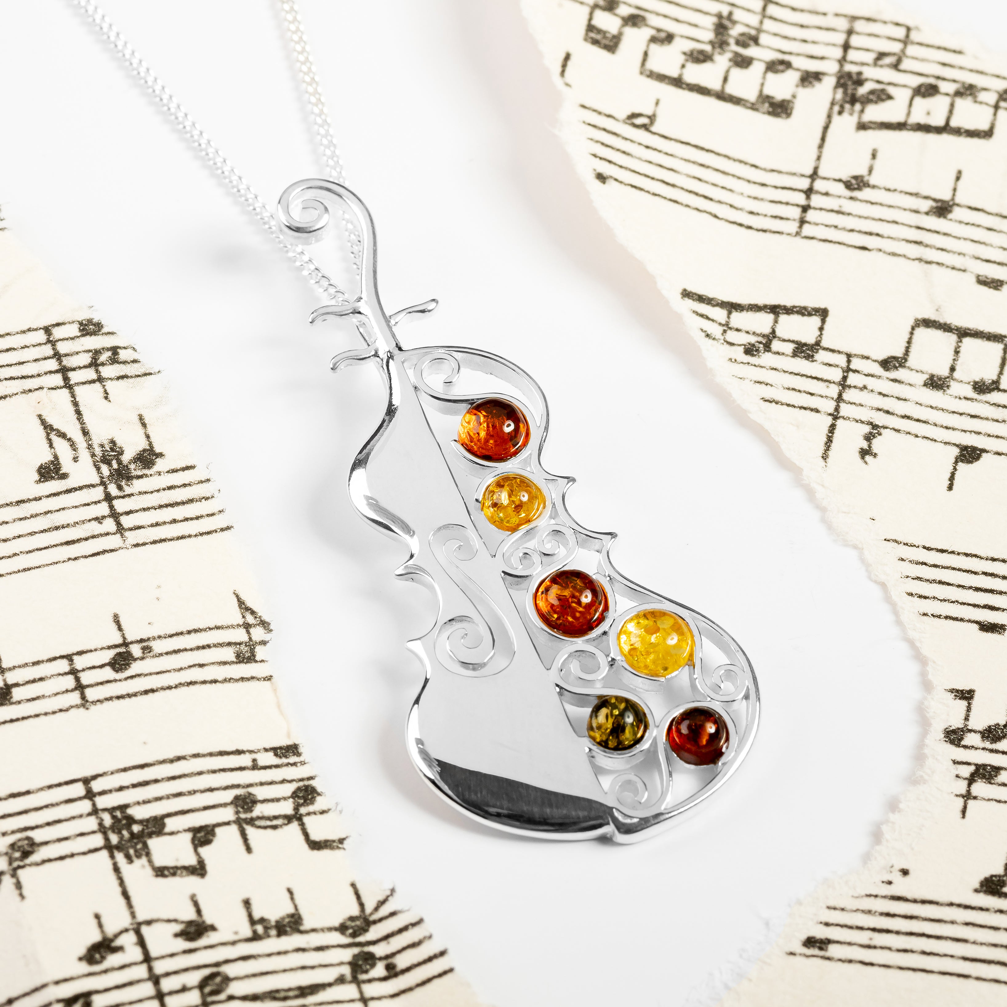 Surprise a player of string instruments with our Silver and Amber Cello Necklace.