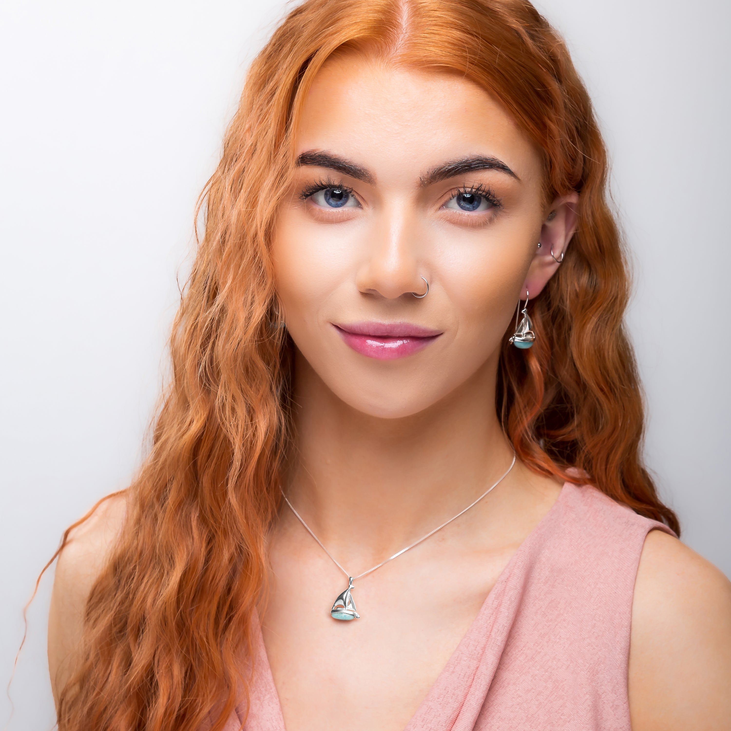 Sailboat / Boat / Yacht Necklace in Silver & Larimar