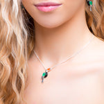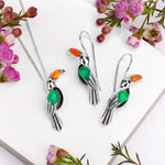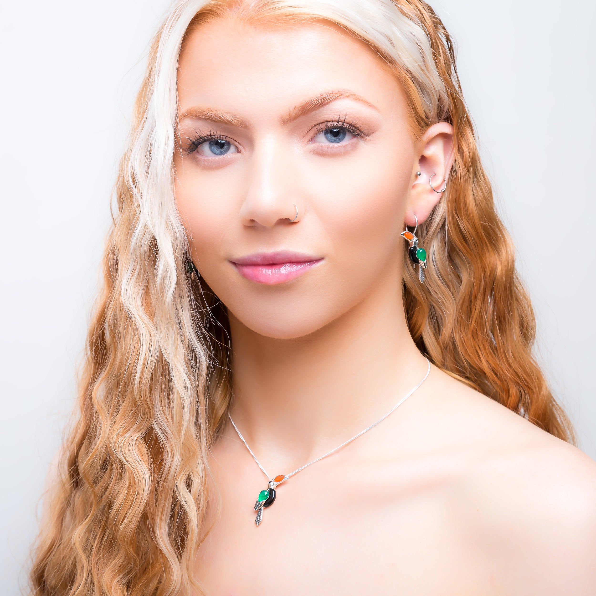 Feel tropical all year round with our Silver with Carnelian, Green Onyx & Black Onyx Toucan Necklace.