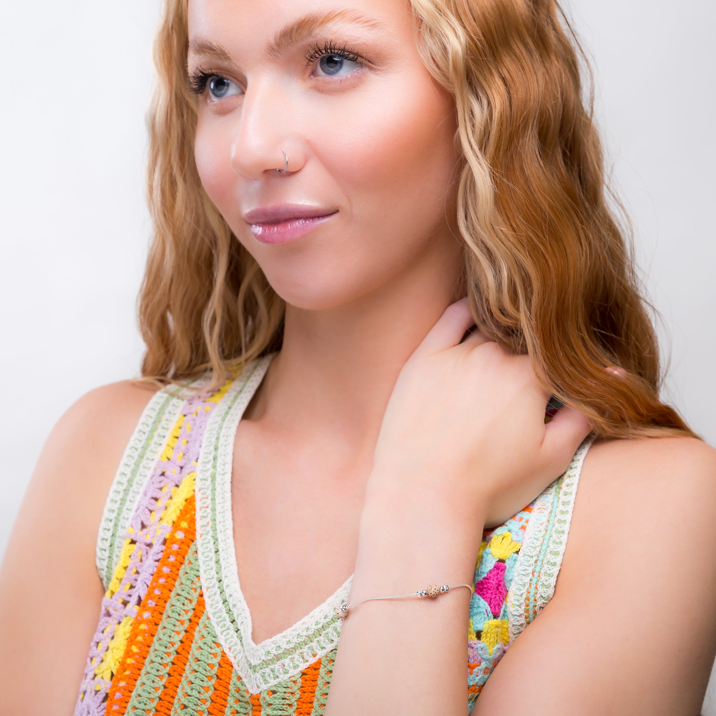 Effortlessly stylish Silver and Lotus Seed Bead Bracelet.
