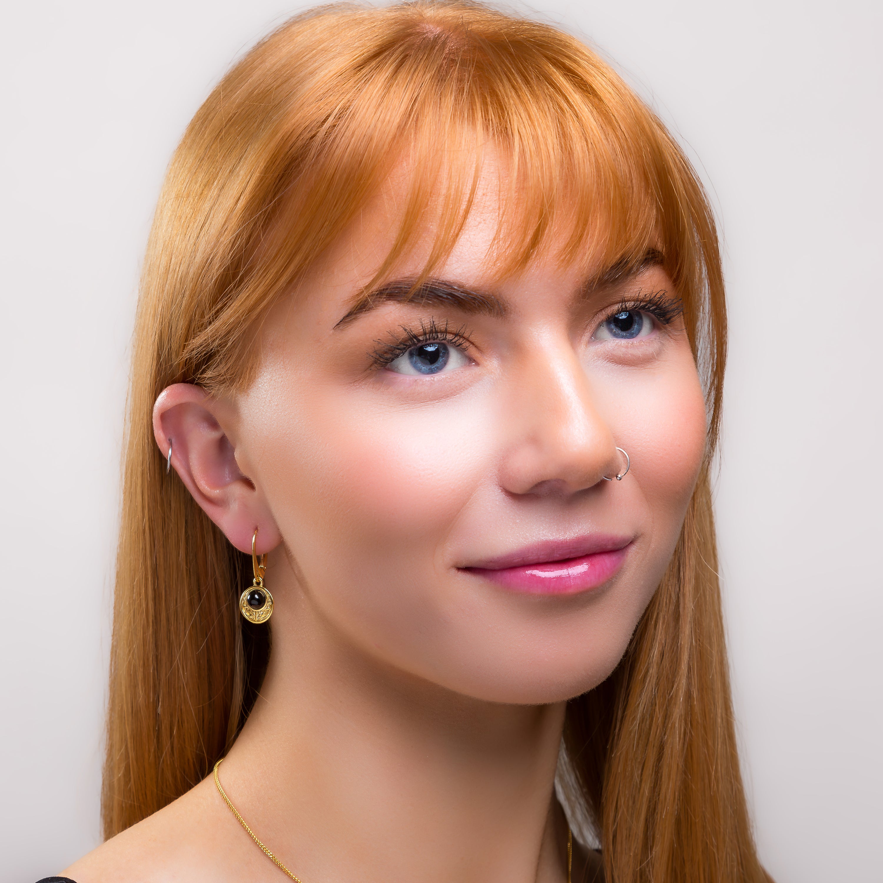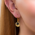 Crafted in 952 silver with 24ct Gold plating, these circle shaped earrings are each adorned with a Black Onyx gemstone at the centre. With a Celtic inspired detailing around the stone, it is unique and elegant. Complete with secure clip back hooks, they are perfect for wearing all day, every day.