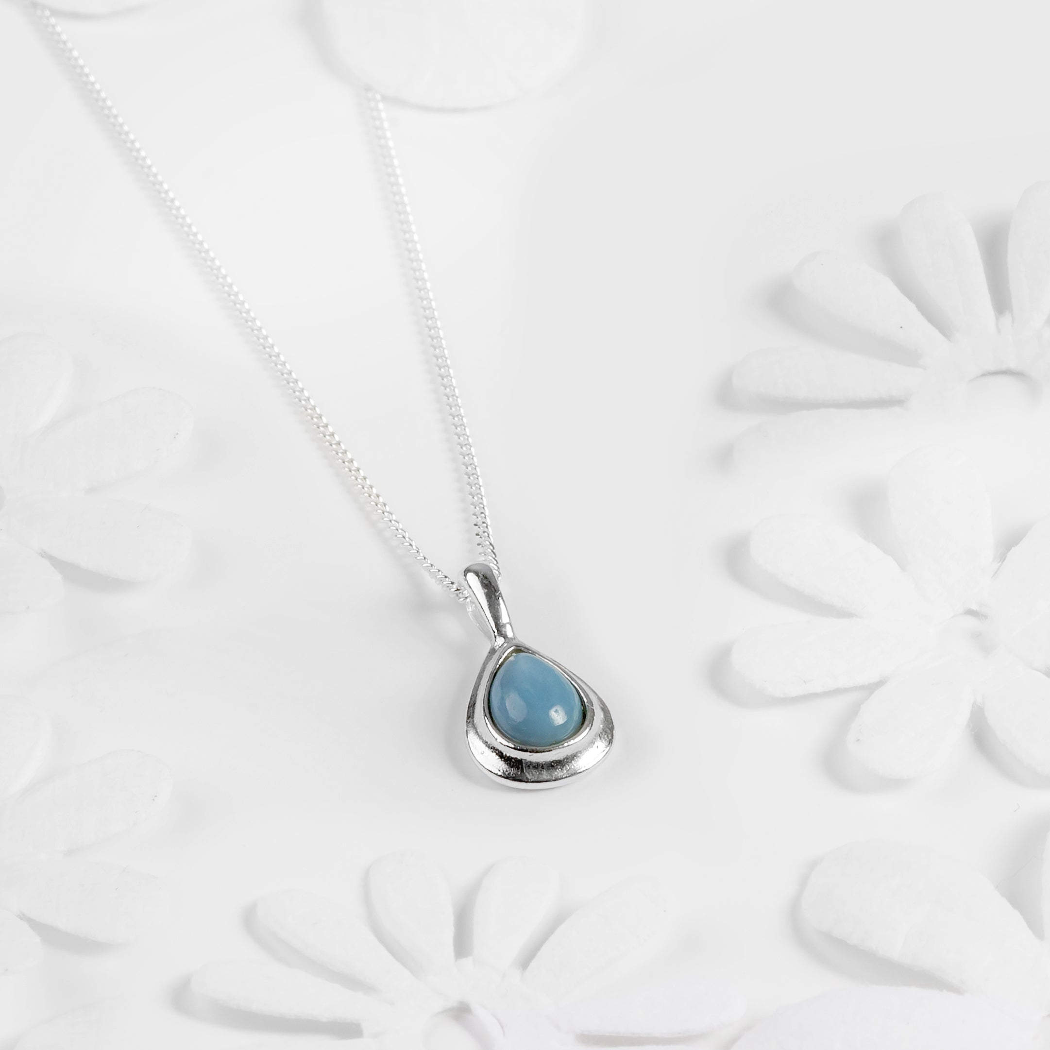 Crafted in a teardrop shape, the stunning Blue Opal gemstone is set into a 925 Sterling Silver mount. With a solid silver chain, it completes this necklace perfectly to suit every occasion.