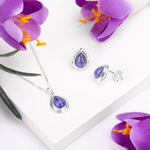 Classic Teardrop Stud Earrings in Silver and Tanzanite
