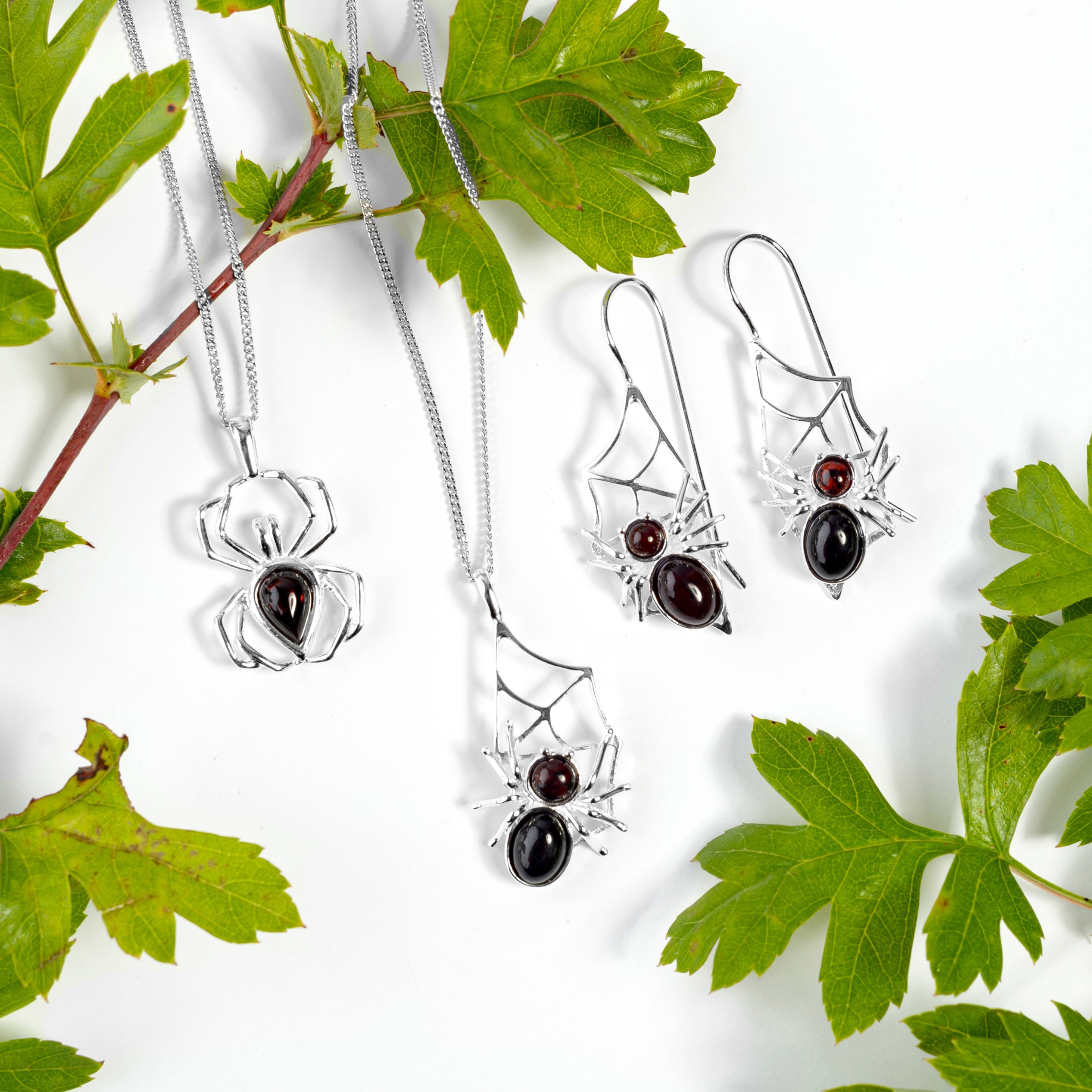 Spider Necklace in Silver and Cherry Amber