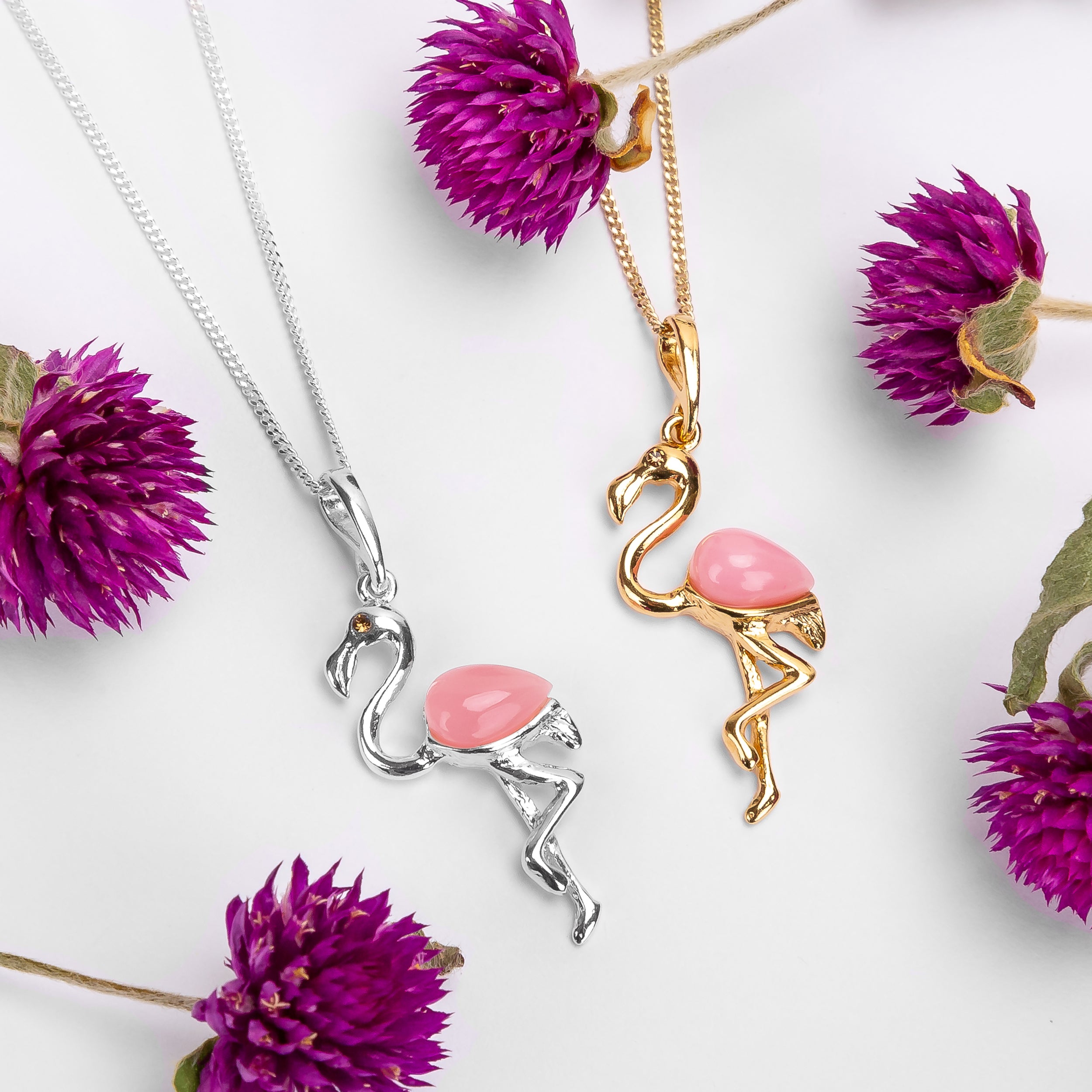 Give your look a funky upgrade with our Silver with 24ct Gold and Pink Agate Flamingo Necklace.
