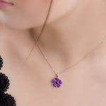 Hand-painted Purple Poppy Flower Necklace in Silver and Amber