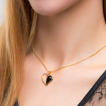 Lovingly handmade in 925 silver and 24ct Gold plating, this necklace features a Black Onyx gemstone cleverly carved into a heart shape with one side left open. The result? A charming and distinctive design that will warm their heart. Simple, yet stylish, this necklace will be cherished for years to come.