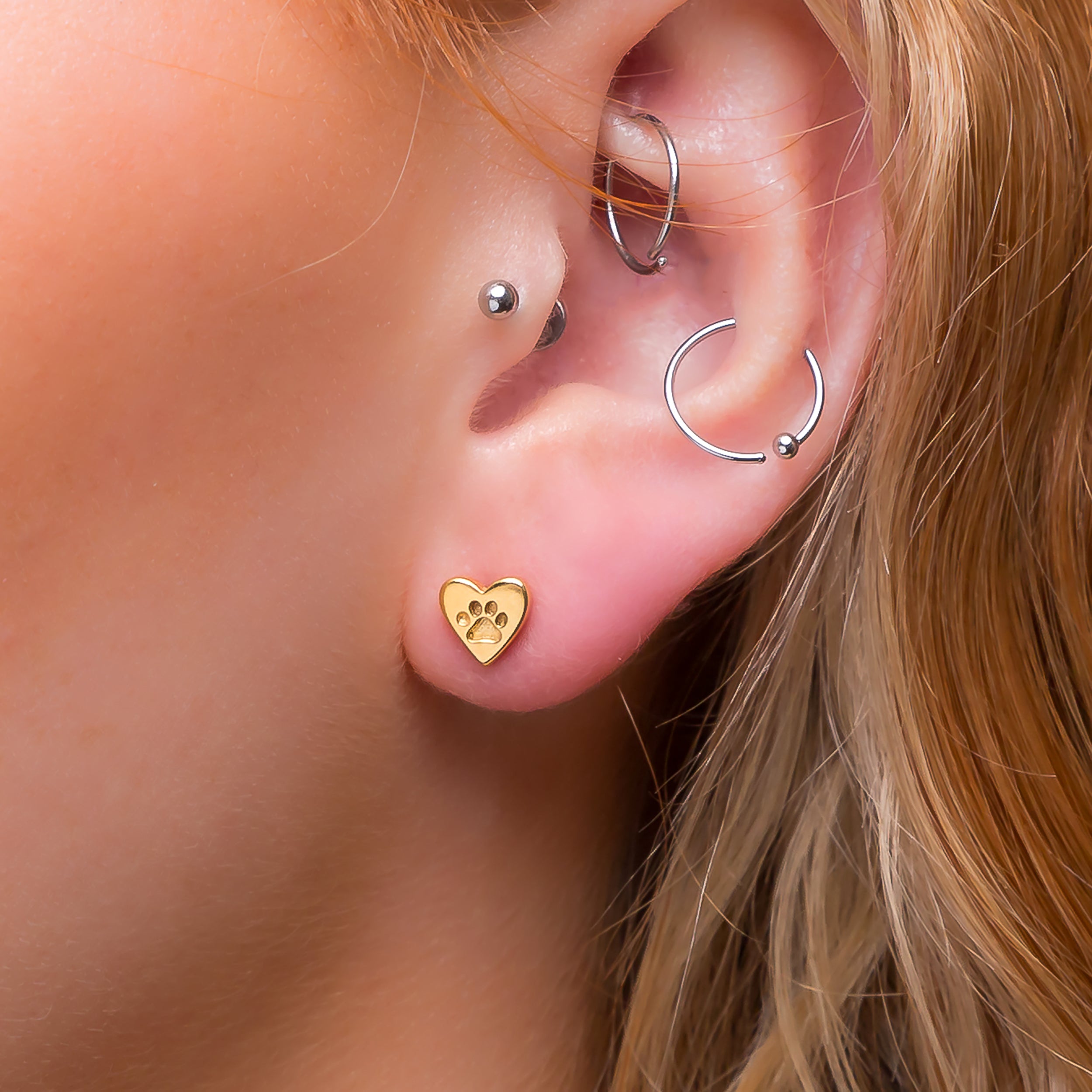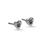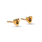 Heart Paw Print Stud Earrings in Silver with 24ct Gold