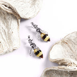 Hornet Bee Stud Drop Earrings in Silver and Amber