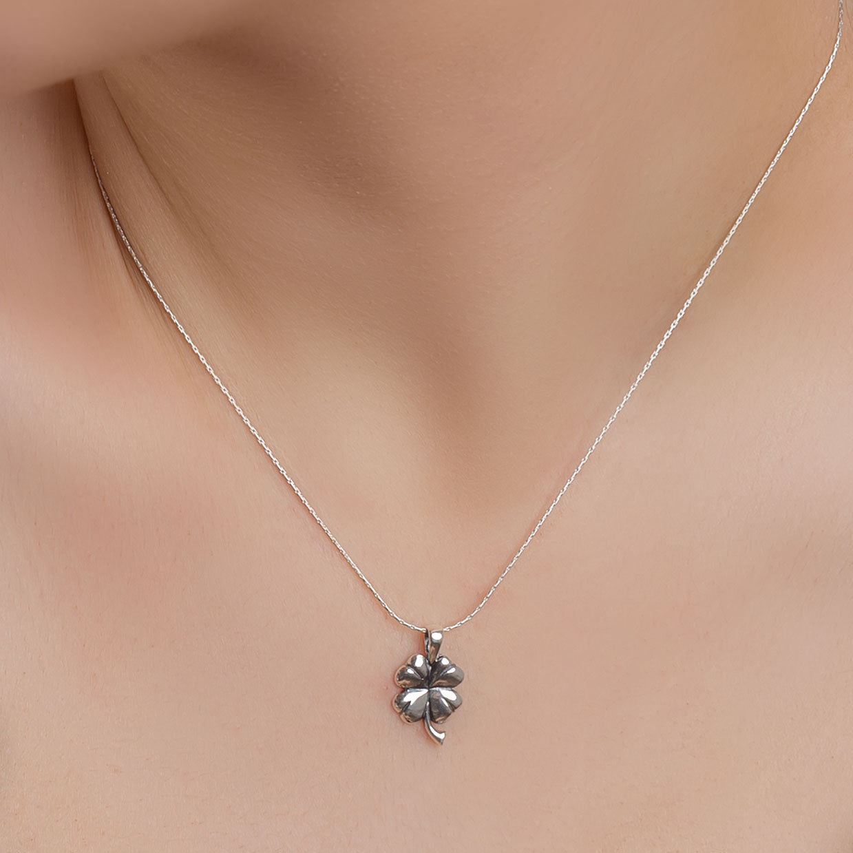 Lucky Four Leaf Clover Necklace in Silver
