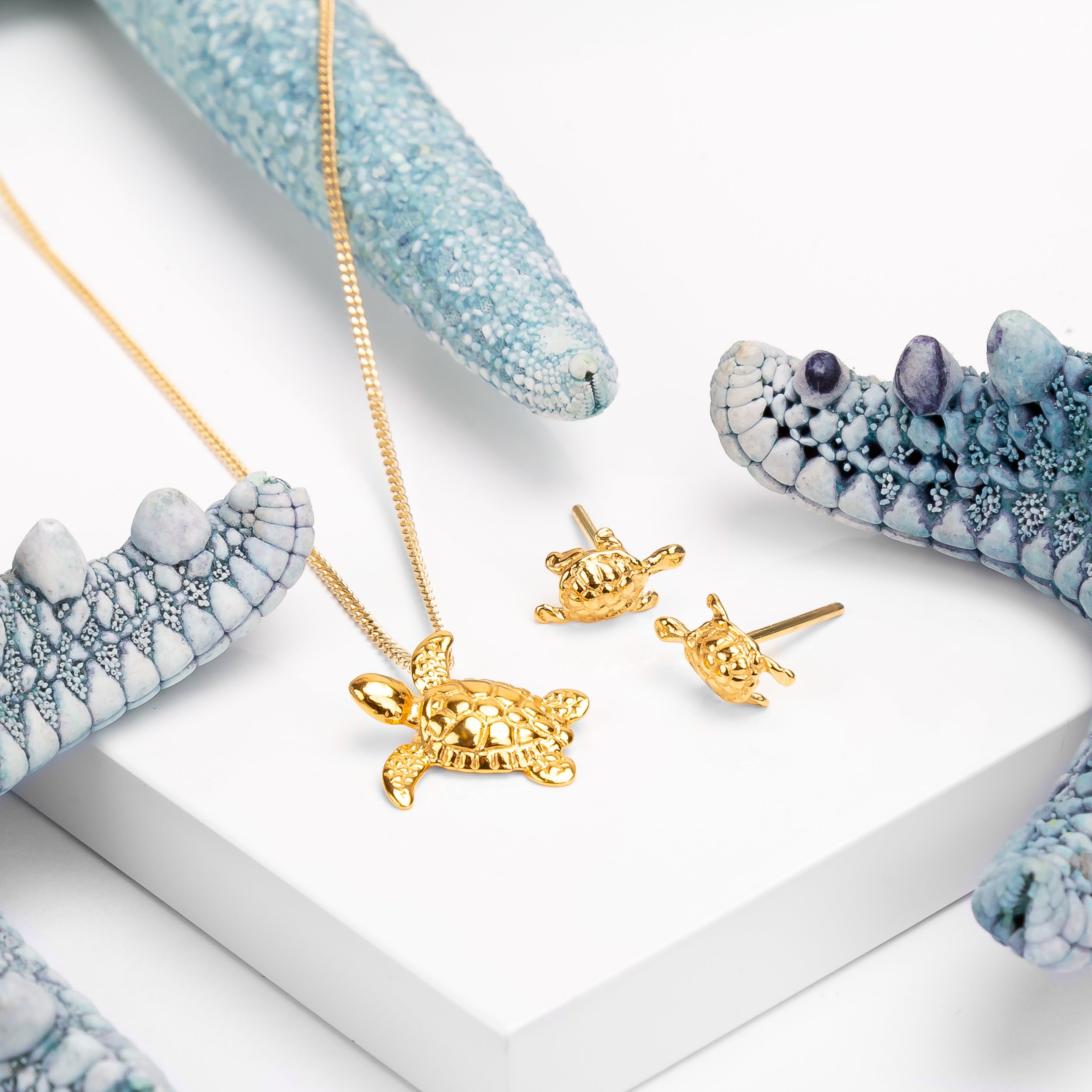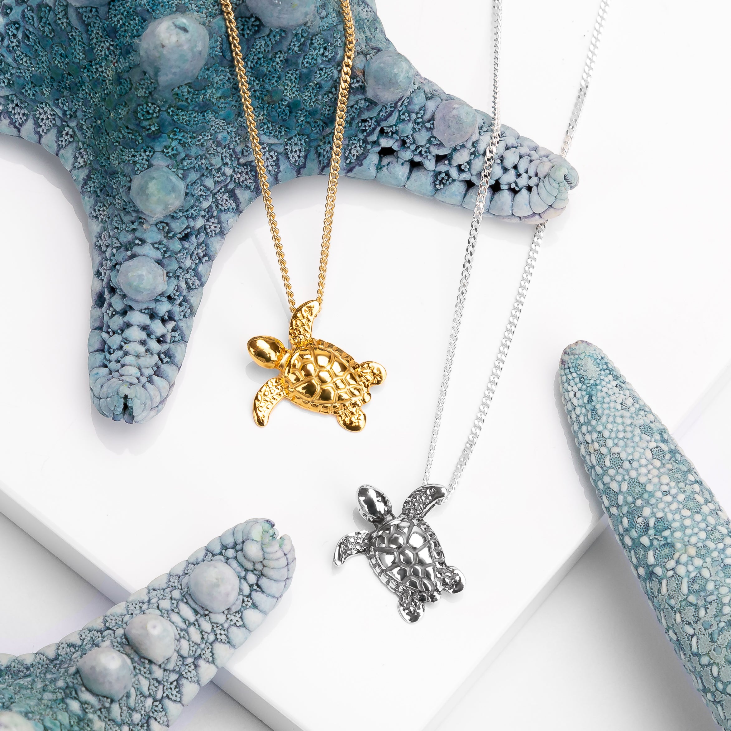 Miniature Sea Turtle Necklace in Silver & 24ct Gold
