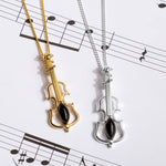 Music Violin Necklace in Silver and Black Onyx