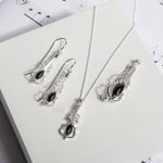 Crafted in Sterling Silver, this necklace has been carefully designed into a perfect violin shape and adorned with a natural Black Onyx gemstone at the centre to add a pop of warm colouring. With intricate silver work to show all the famous attributes of this popular musical instrument. Finished with solid silver chain making it ready to wear and treasure.