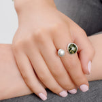 Inspired by our love of contemporary style our Silver and Amber Open Double Pebble Ring is perfect for those who love statement jewellery.