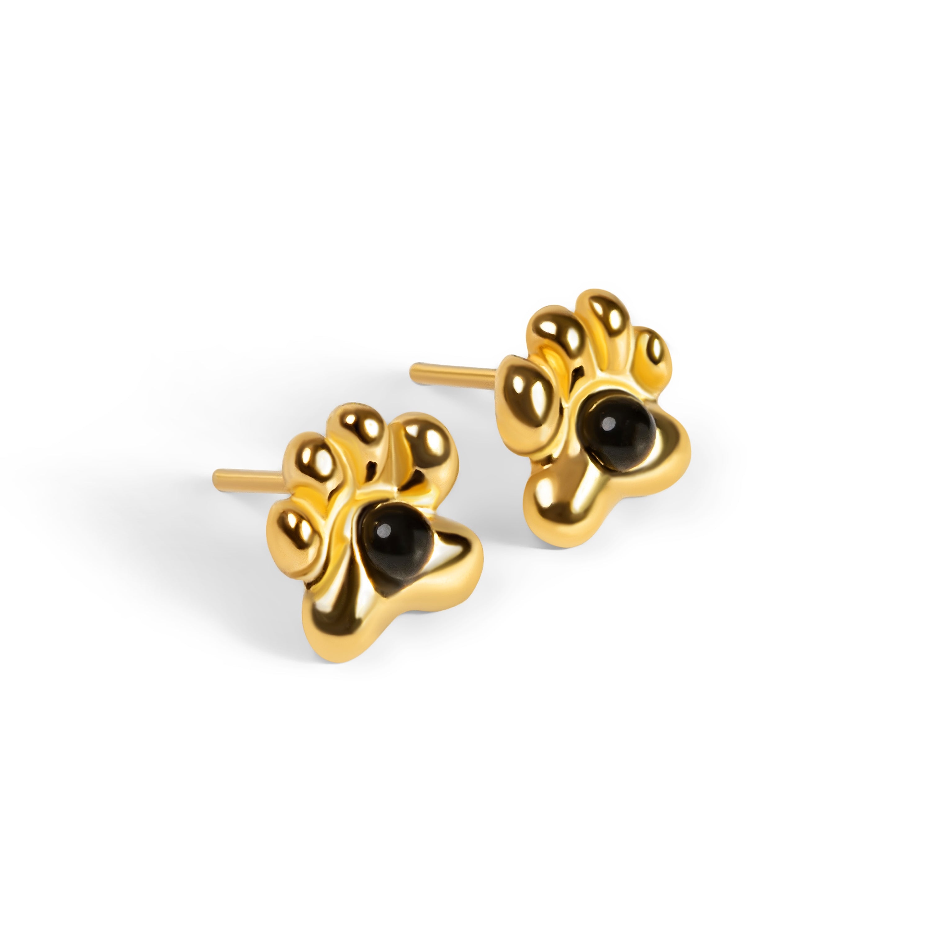 Crafted in solid 925 silver, these earrings have natural Black Onyx gemstones at the centre of each paw.