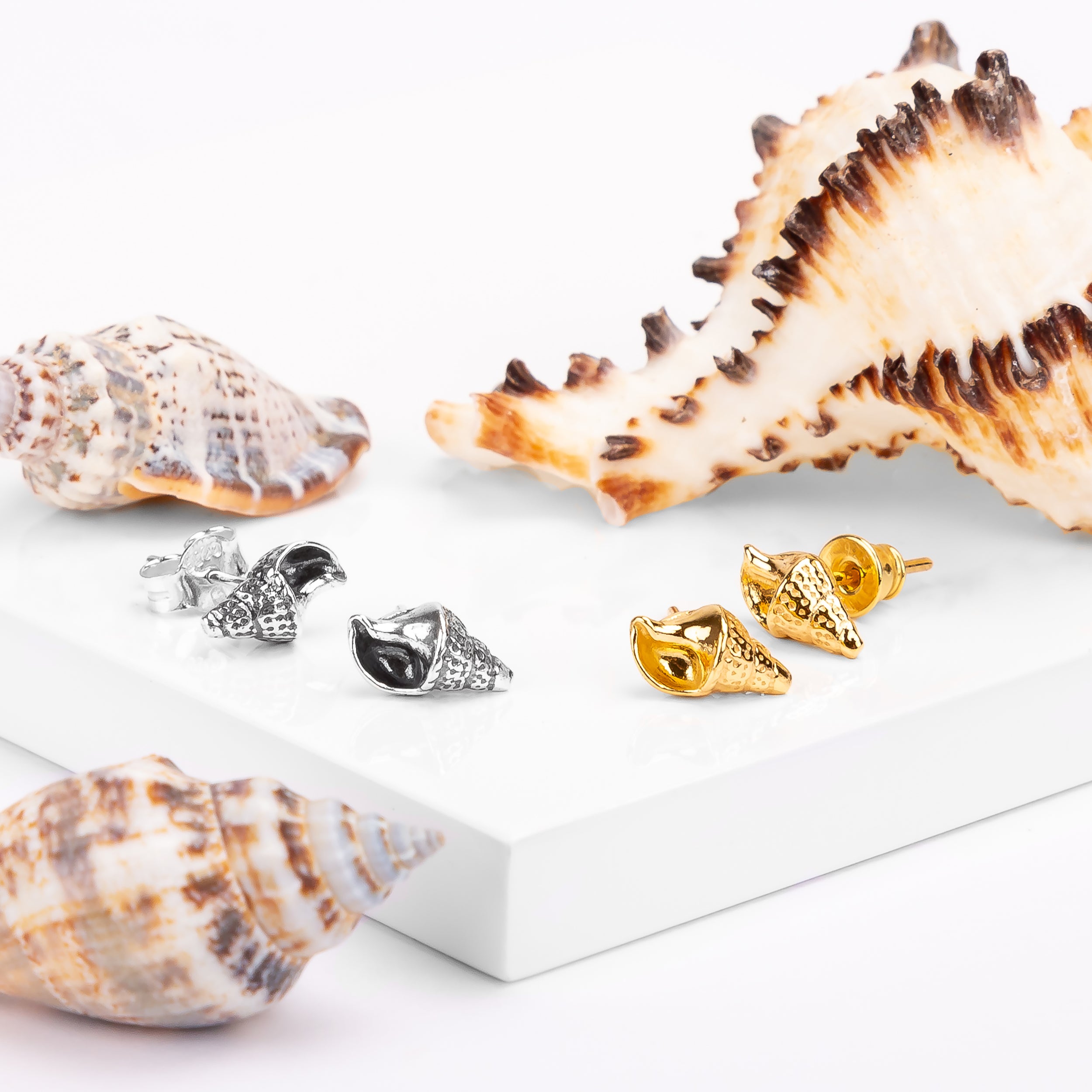 Sea Shell / Seashell Stud Earrings in Silver with 24ct Gold