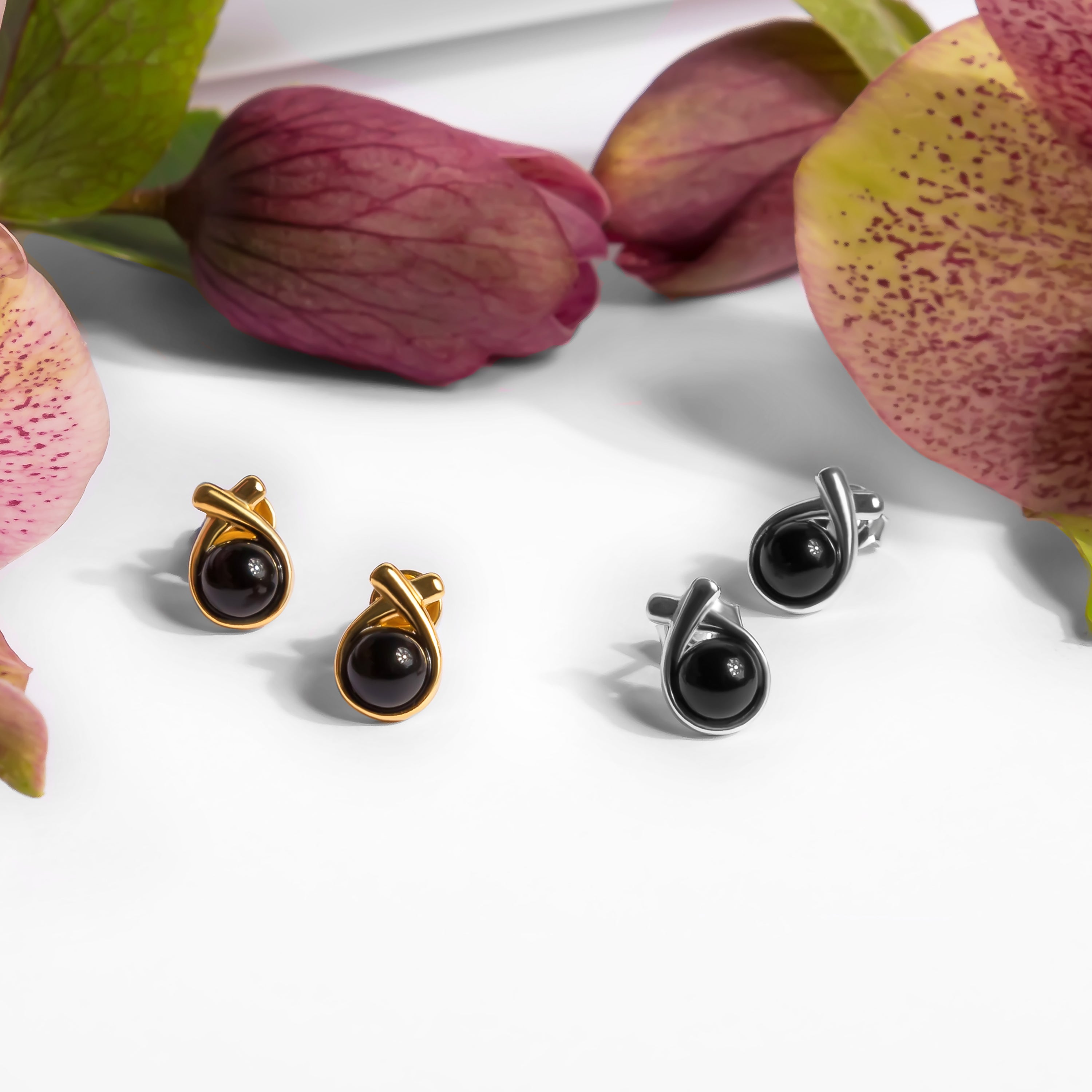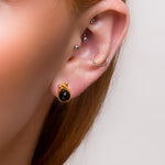 Lovingly crafted in 925 Sterling and finished in 24ct Gold, each earring is adorned with a single round natural Black Onyx  gemstone which has been set into a 'kiss'. Finished with a stem post and butterfly back, they are simple, but stylish.