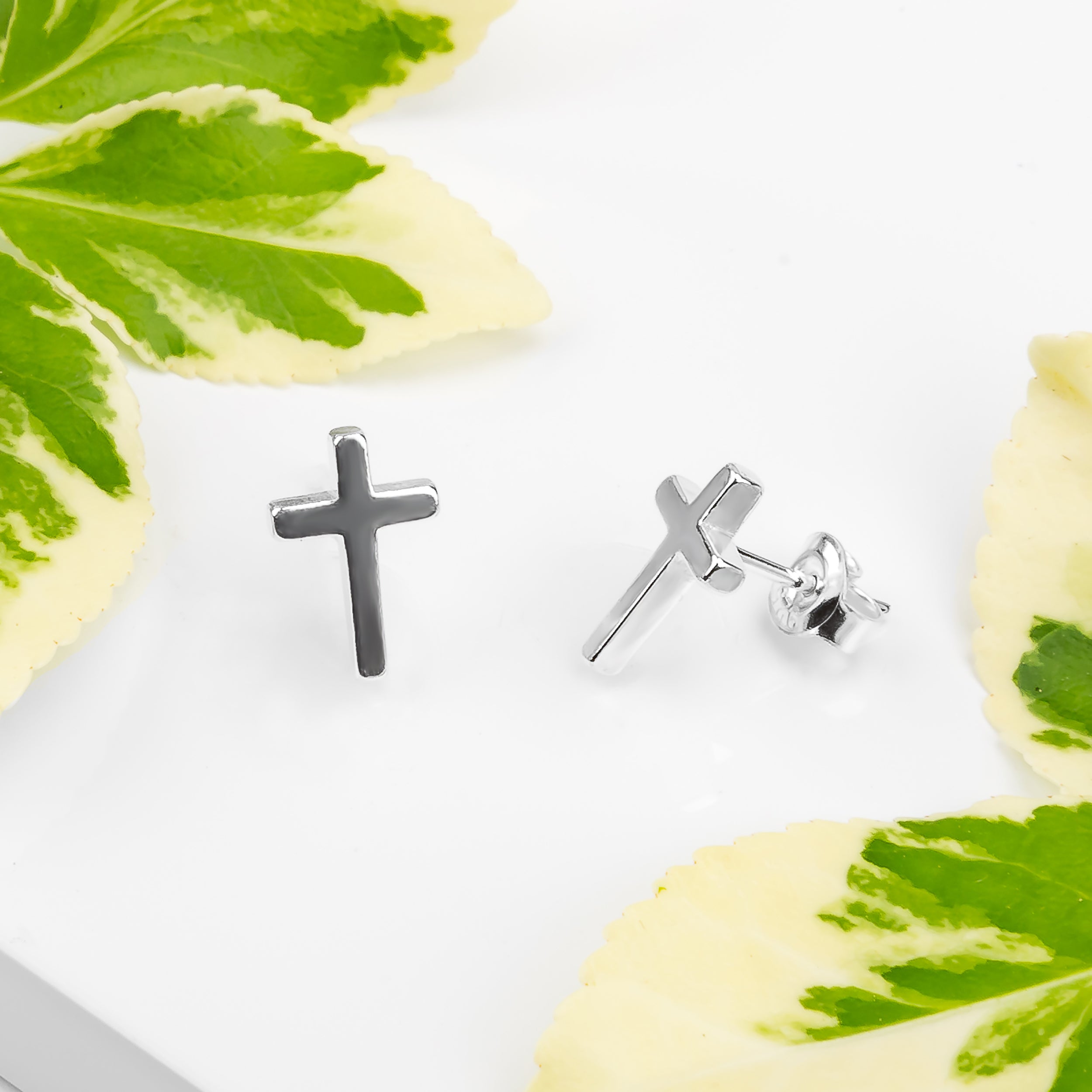 A simple but pretty Silver Cross Stud Earrings are just right for wearing every day.