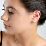 Small Round Stud Earrings in Silver and Peridot