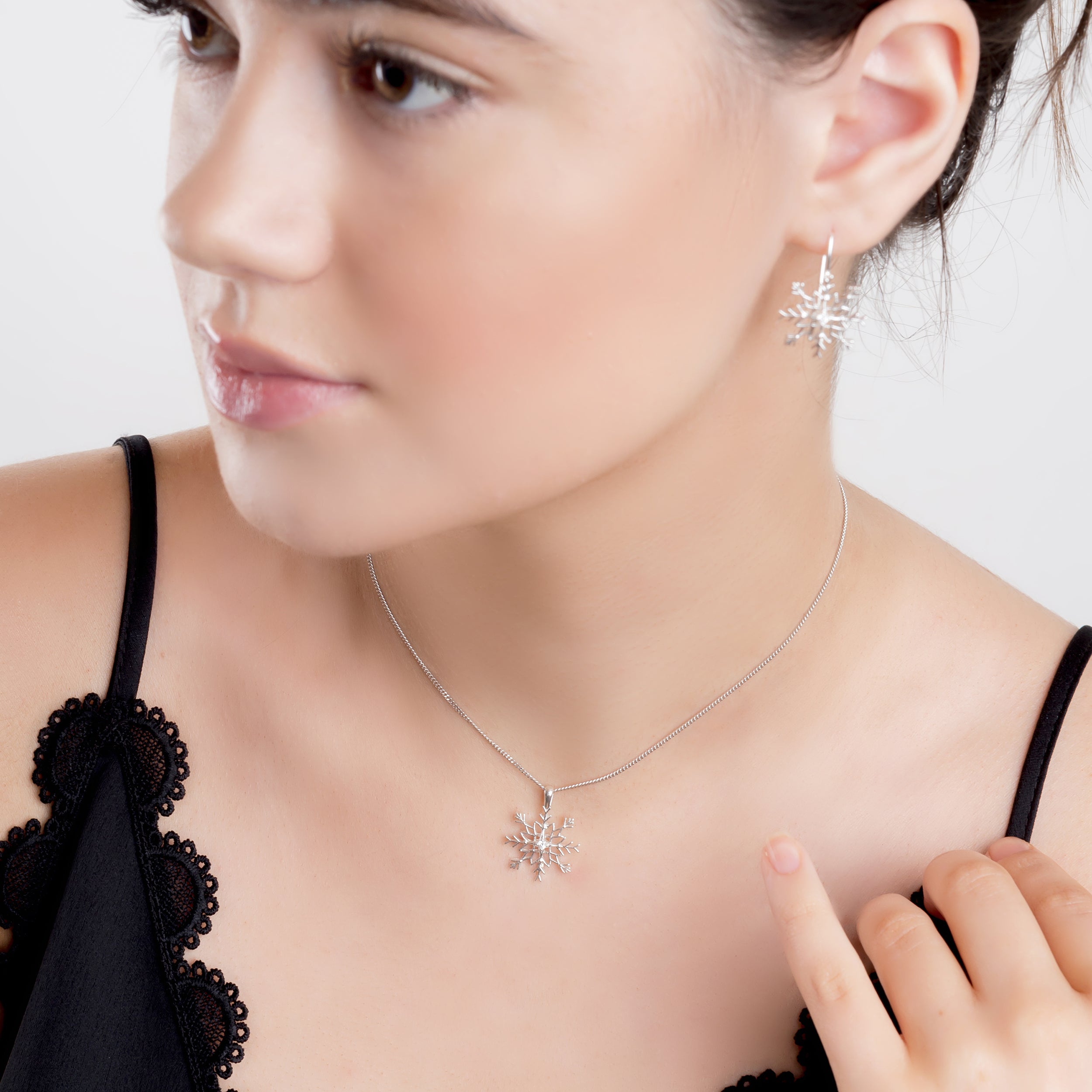 Sparkling Snowflake Necklace in Silver and Cubic Zirconia