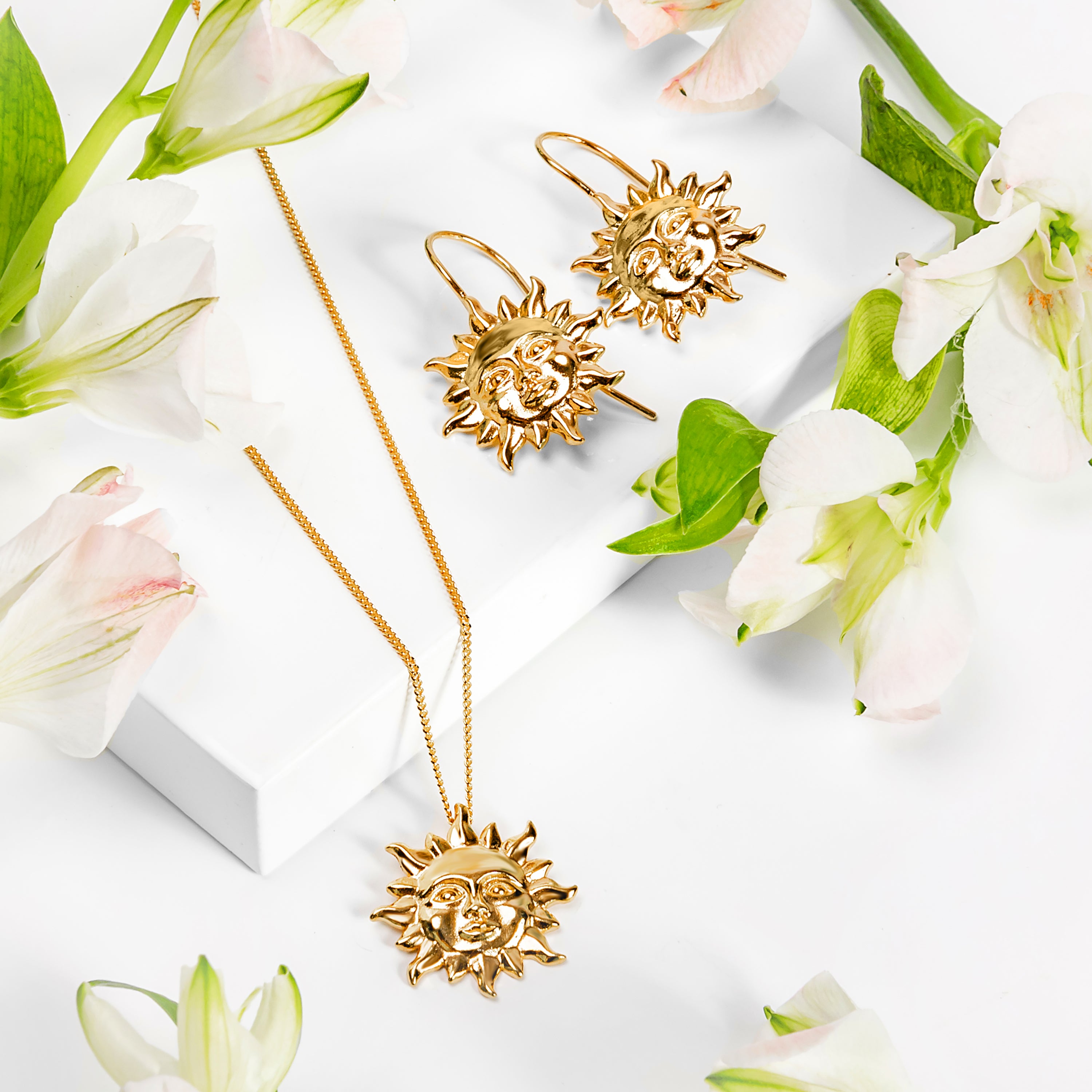 Don't wait for the sun to come to you, bring it now with these Silver with 24ct Gold Sun of May Sun Face Hook Earrings.