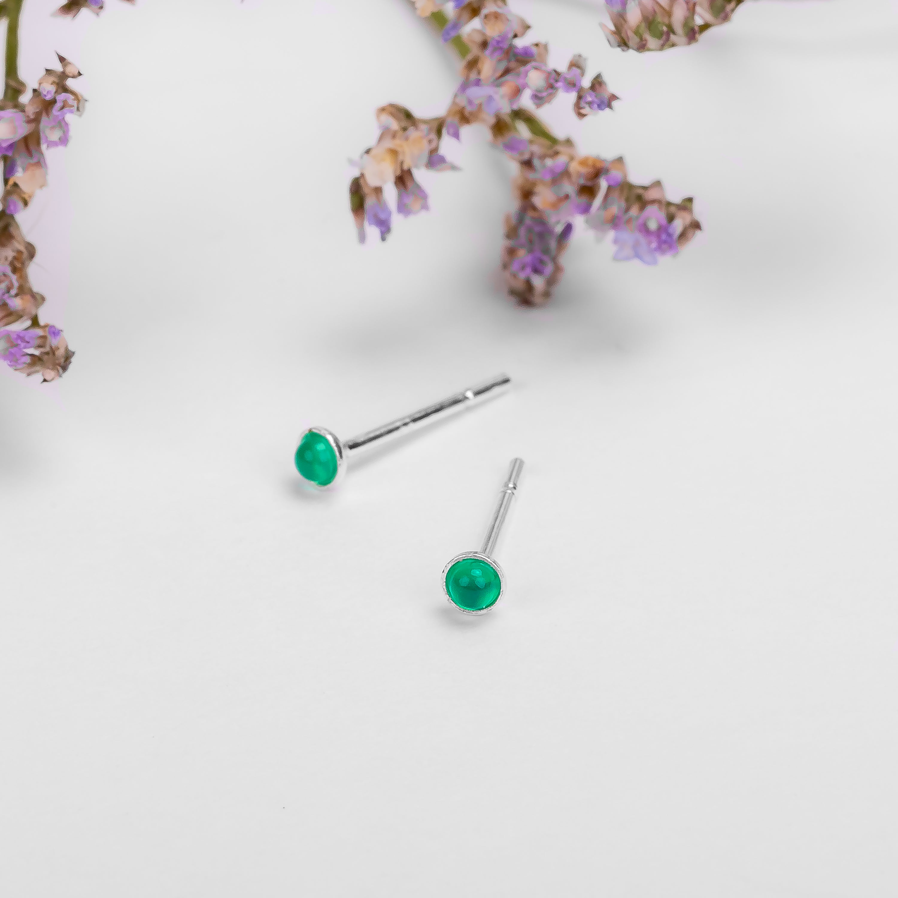 Teeny Tiny Round Stud Earrings in Silver and Green Onyx