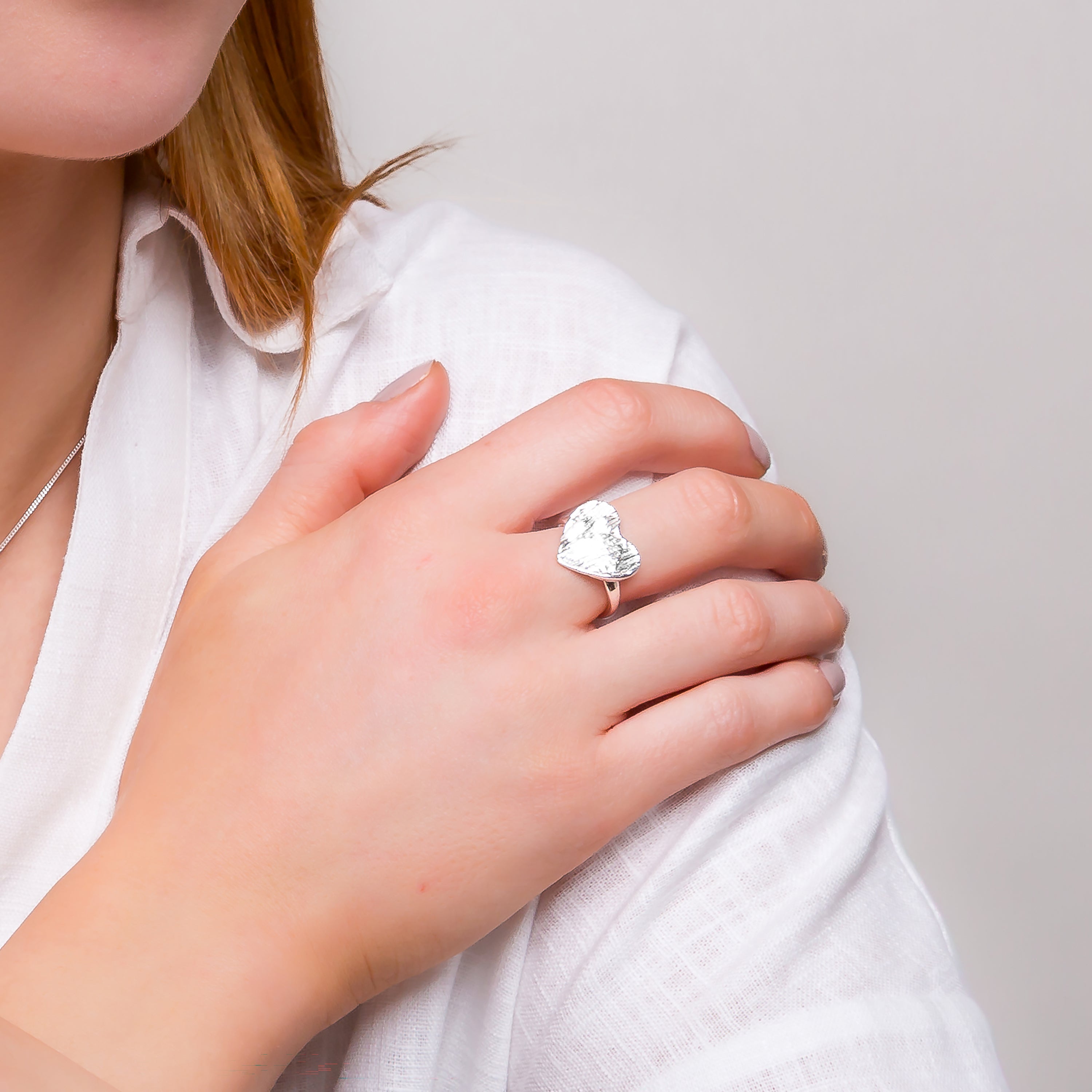 Embrace timeless elegance with this sterling silver heart ring, a refined expression of affection and vulnerability.