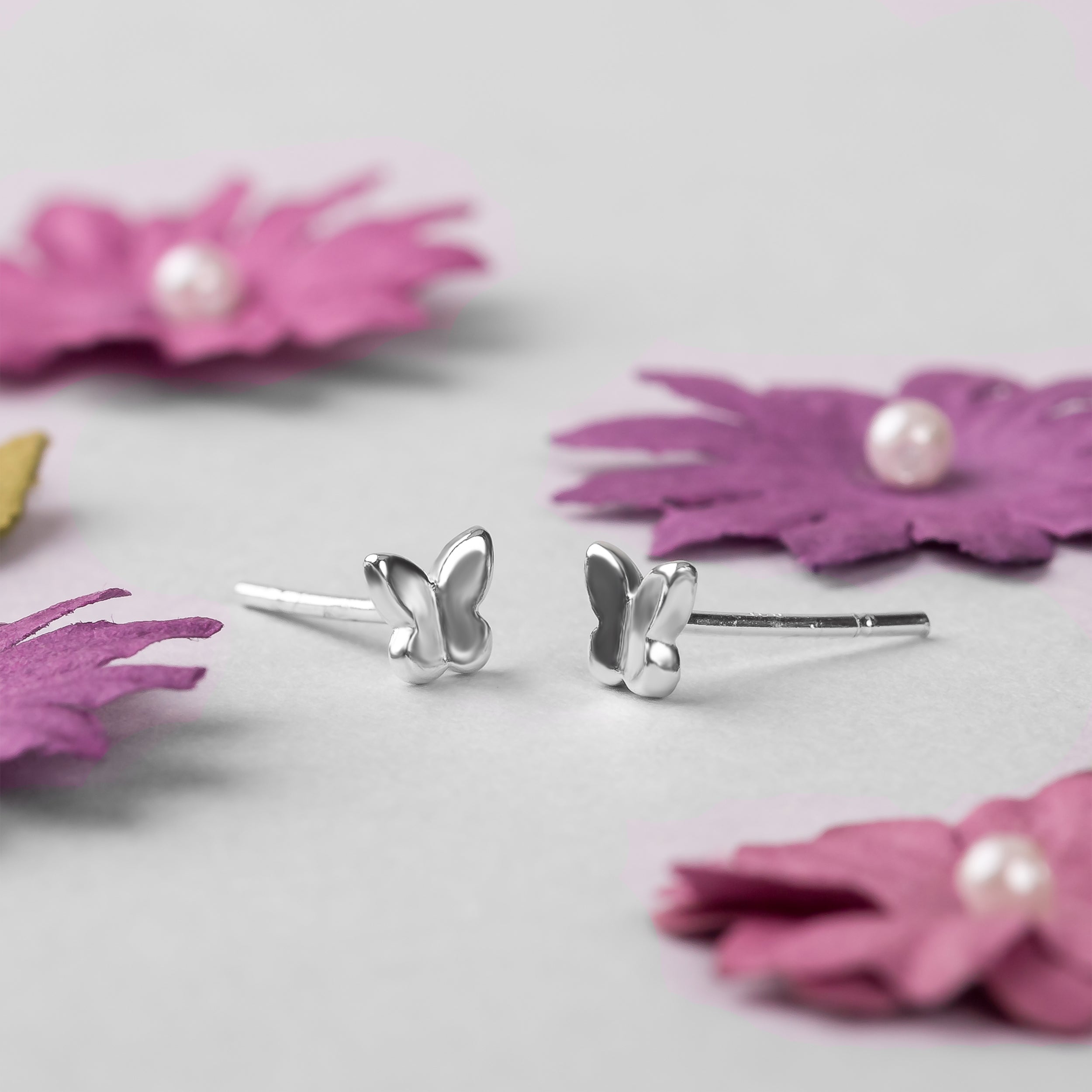 A simple but pretty Silver Tiny Butterfly Stud Earrings are just right for wearing every day.