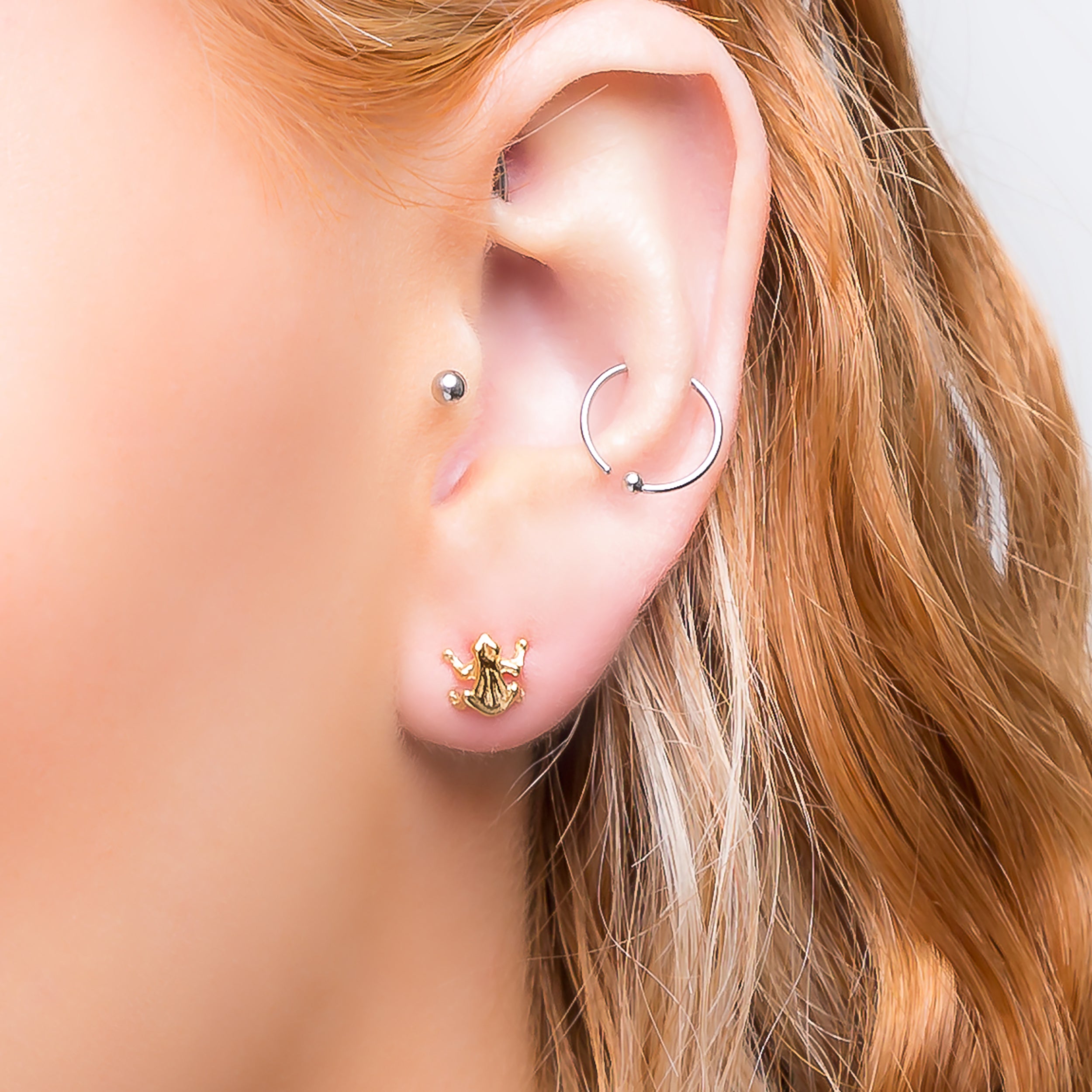 Miniature Pineapple Stud Earrings in Silver with 24ct Gold