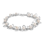 Add touch of elegance to your outfit with our Silver and Pearl Flower Petal Bracelet.