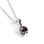 Crafted in 925 Sterling Silver, the pendant holds a single round cultured Black Pearl which is held in by elongated silver. Complete with a silver chain, it is perfect for those who love minimal jewellery.