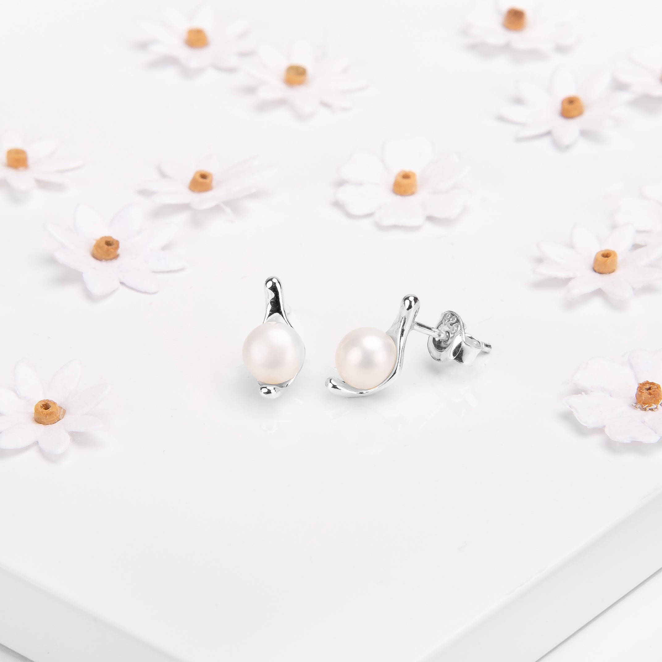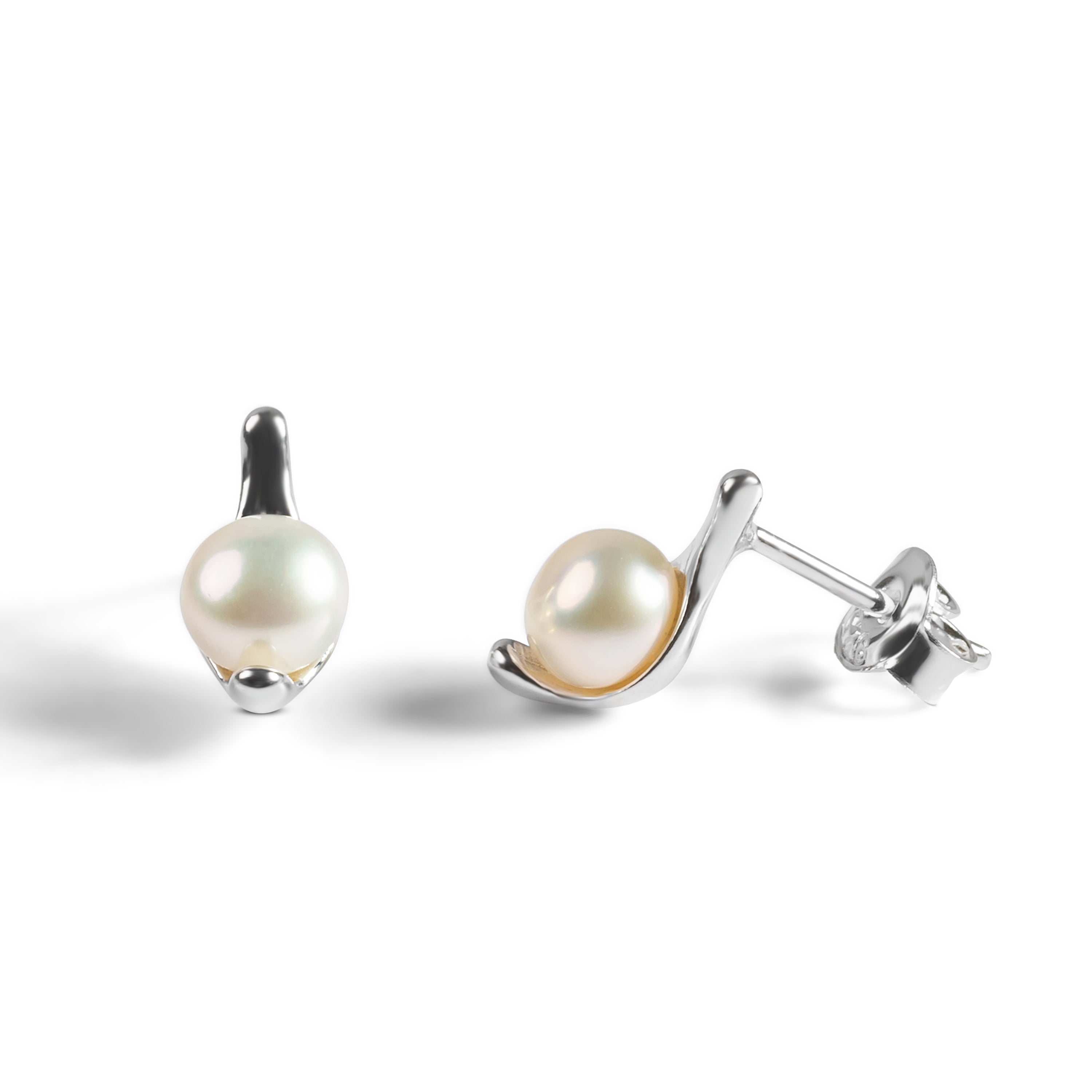 Elegant Stud Earrings in Silver and Pearl