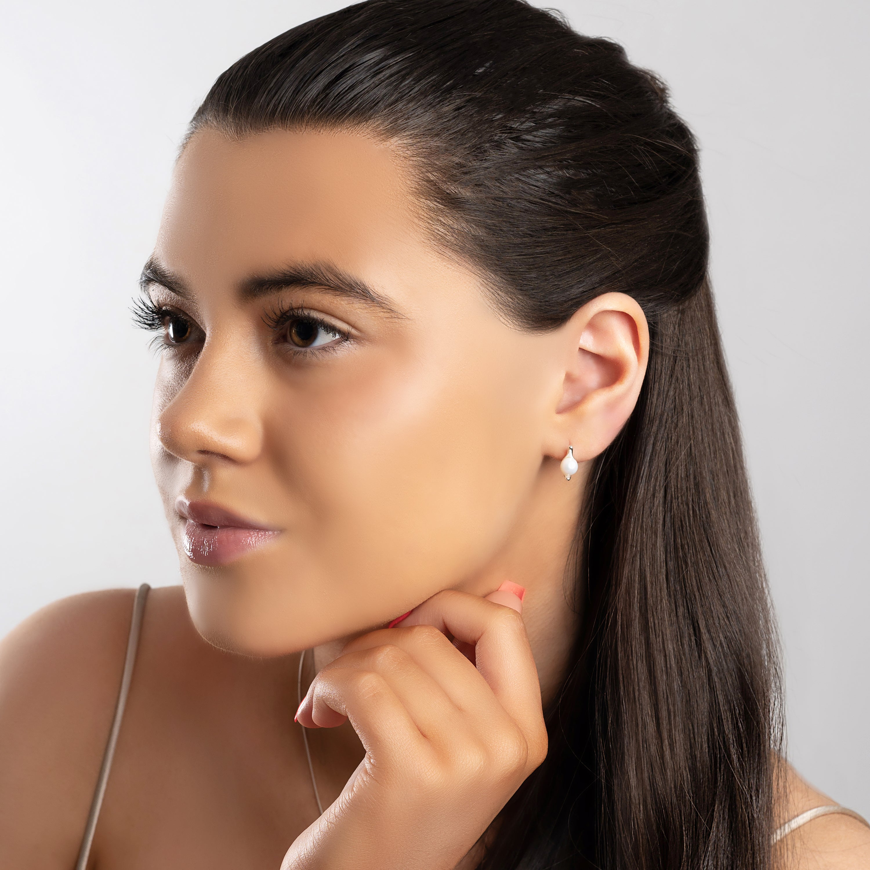 Handcrafted in solid 925 silver, the round white Pearl is held in by a carefully designed silver bar which creates a simple but sophisticated look.