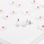 Perfect for any occasion, Elegant Silver and White Pearl Stud Earrings.