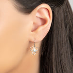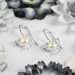 Flower Petal Hook Earrings in Silver & White Pearl