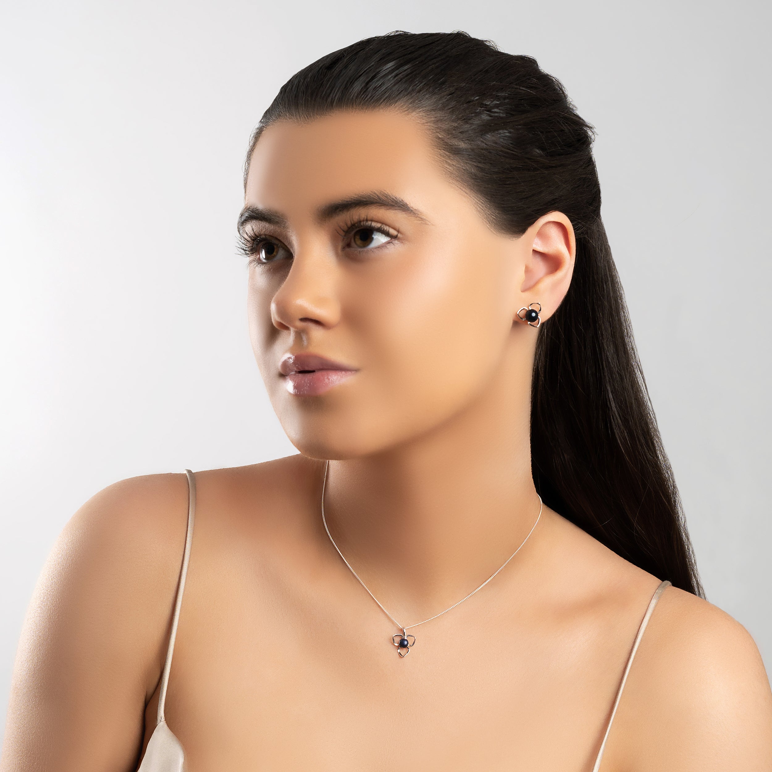 Handcrafted in 925 solid silver, the pearl itself sits at the centre of the flower which is made up of 3 pointed petals.