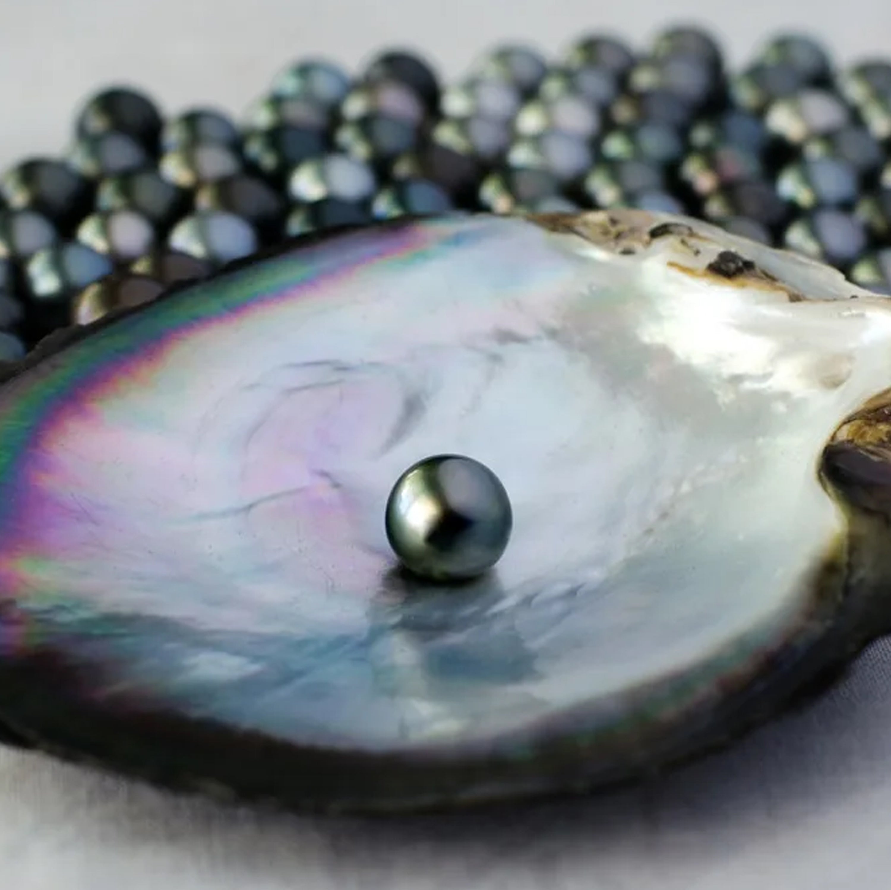 The Tahitian Pearl, also known as the black pearl, is a natural gem created by the black lip oyster (Pinctada margaritifera). These pearls are named after their main cultivation area around the islands of French Polynesia, near Tahiti.