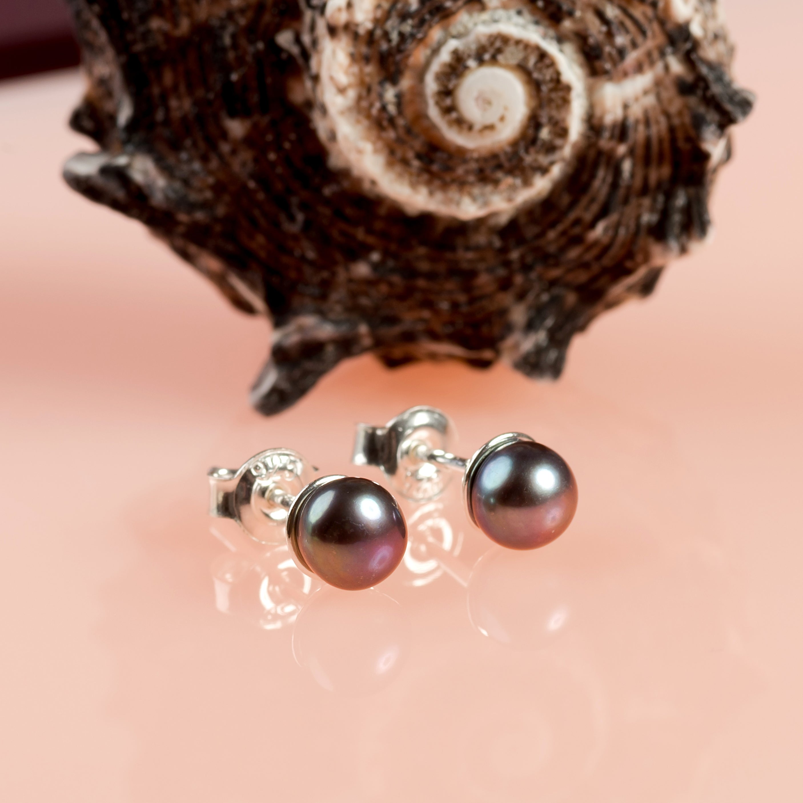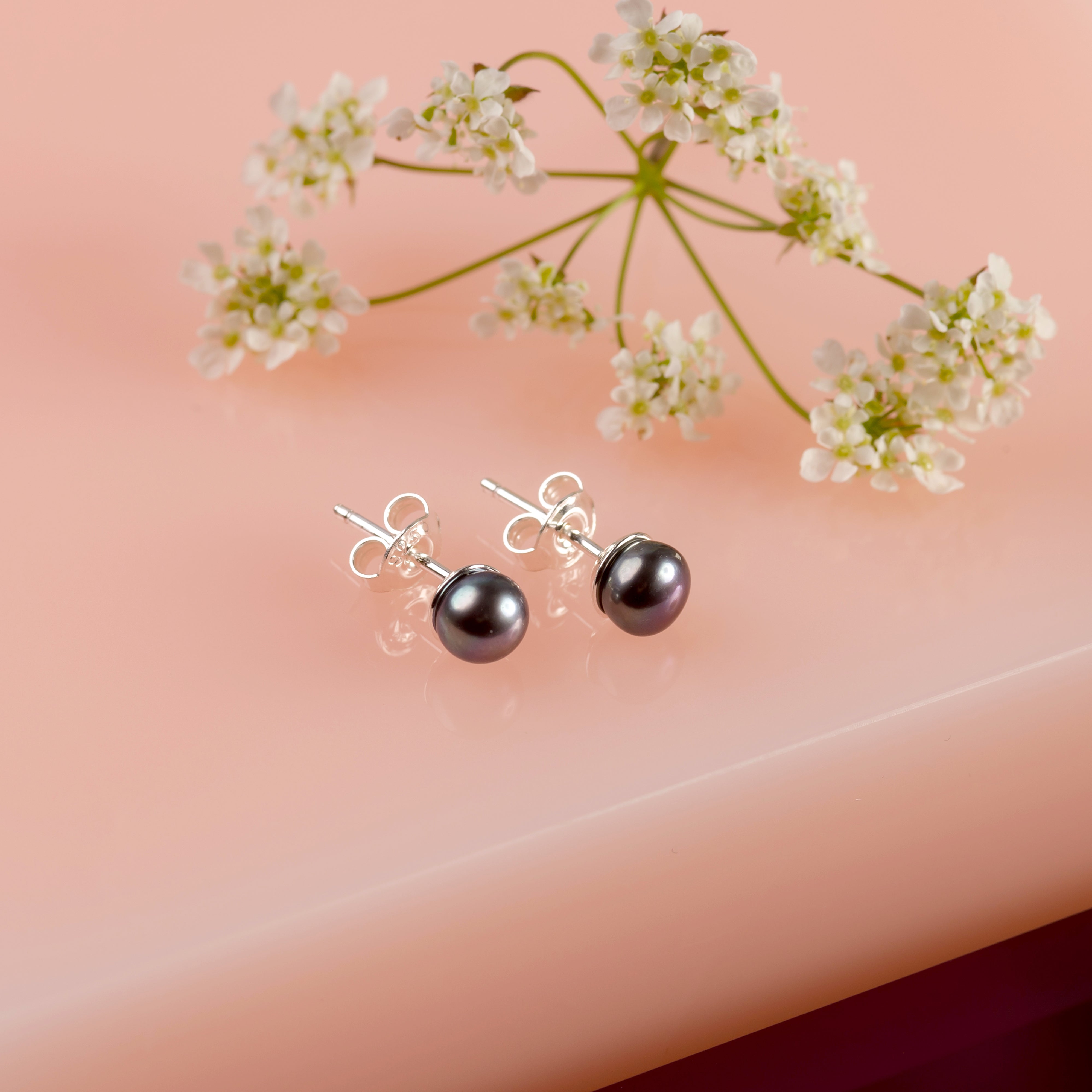 A Classic pair of small cultured freshwater Black Pearl Stud Earrings.