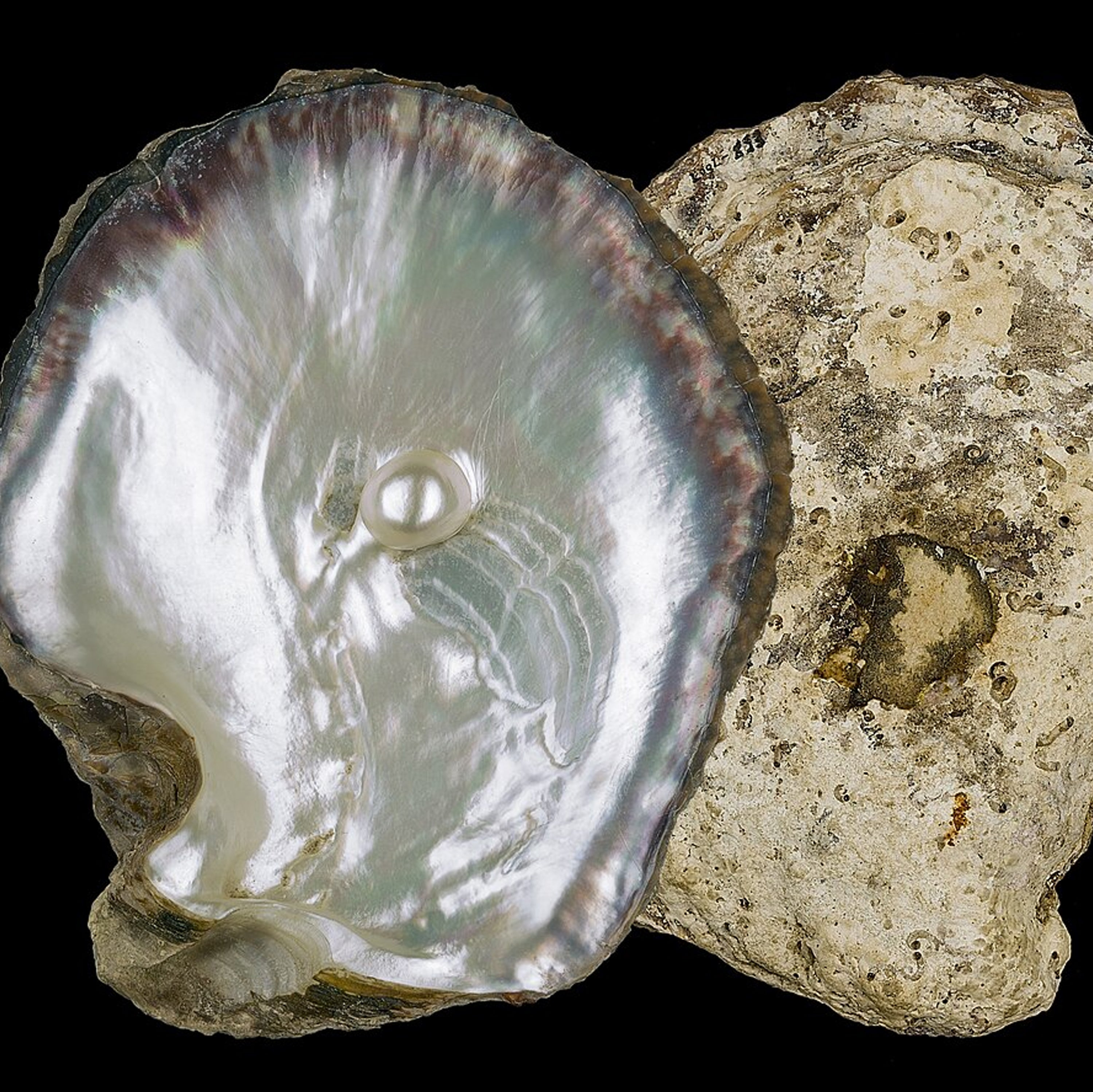 The Tahitian Pearl, also known as the black pearl, is a natural gem created by the black lip oyster (Pinctada margaritifera). These pearls are named after their main cultivation area around the islands of French Polynesia, near Tahiti.