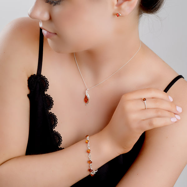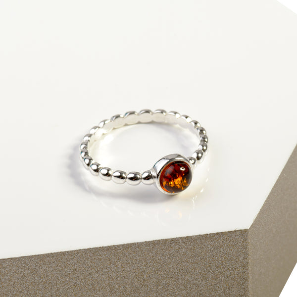 Crafted in solid 925 silver with a carefully designed beaded band. All lovingly finished with a gorgeous natural Amber gemstone.