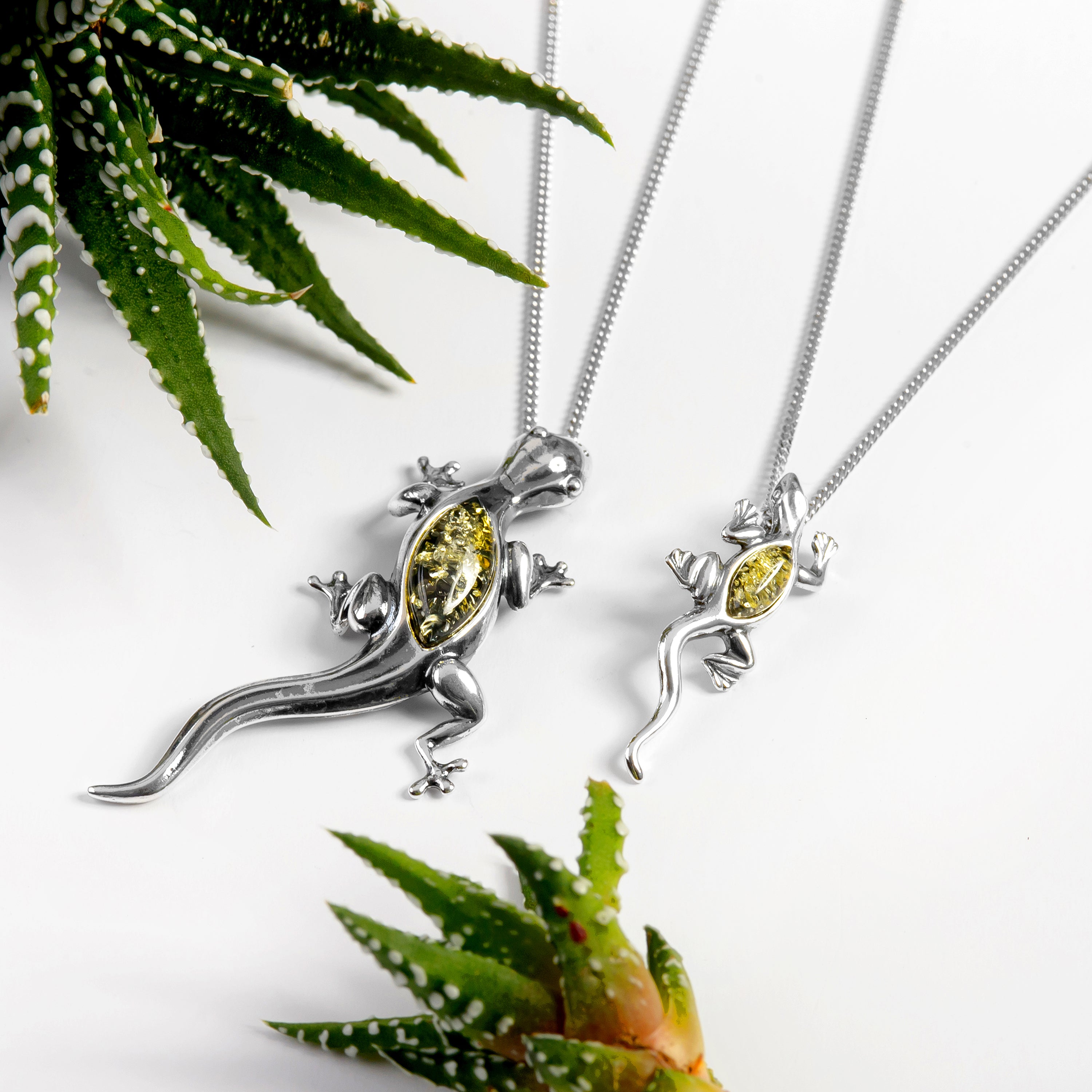 If you're mad about reptiles, then you'll love our Silver and Green Amber Lizard Gecko Necklace.