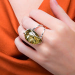 Handmade Statement Green Amber Ring - Natural Designer Gemstone