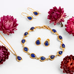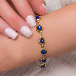 Handcrafted in solid 925 silver, this bracelet is adorned with 11 bold blue Lapis Lazuli gemstones which have been carefully cut and polished into a teardrop shape. Each stone is set and linked together in silver.